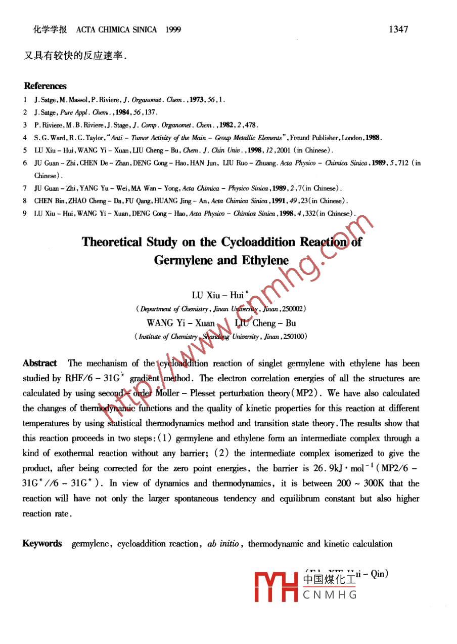 鍺烯與乙烯環(huán)加成反應的理論研究