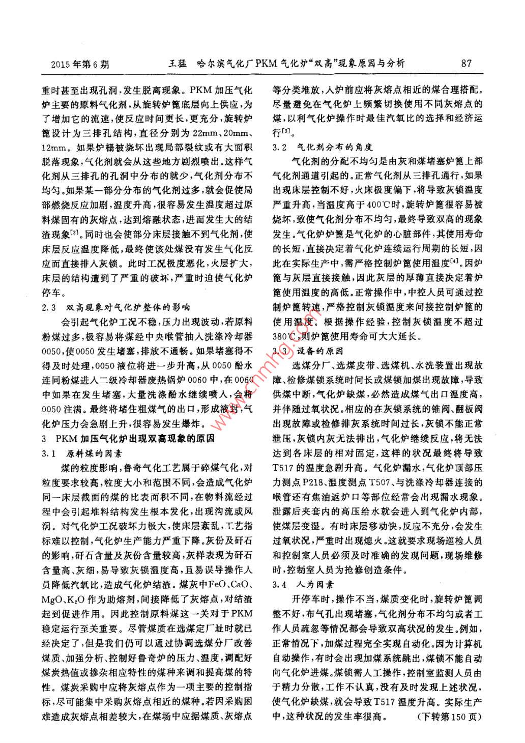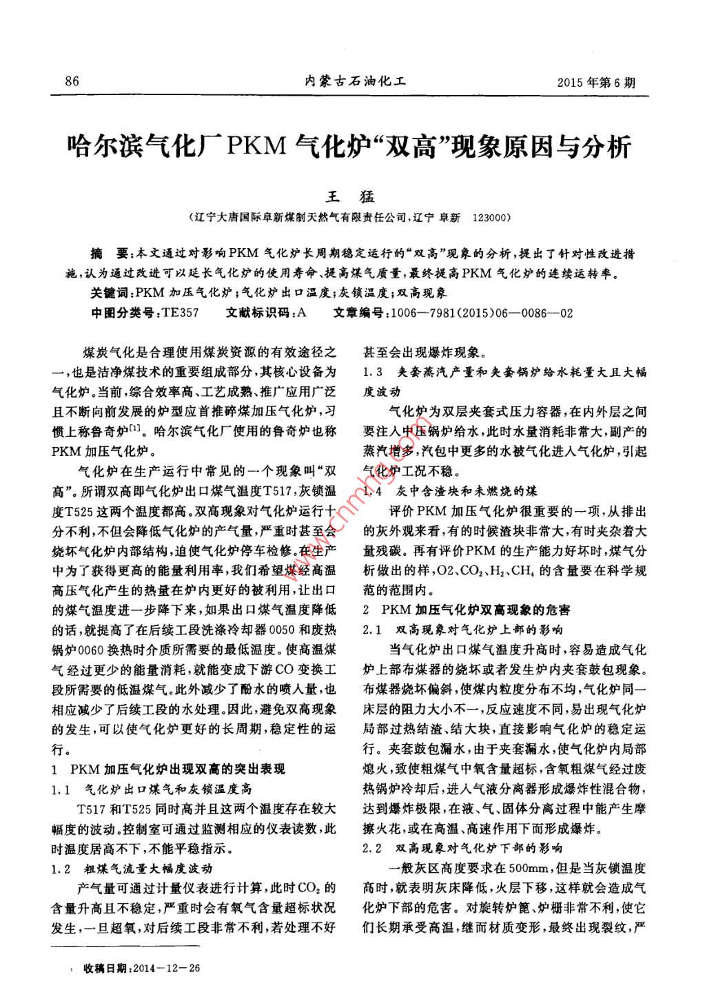 哈爾濱氣化廠PKM氣化爐“雙高”現(xiàn)象原因與分析