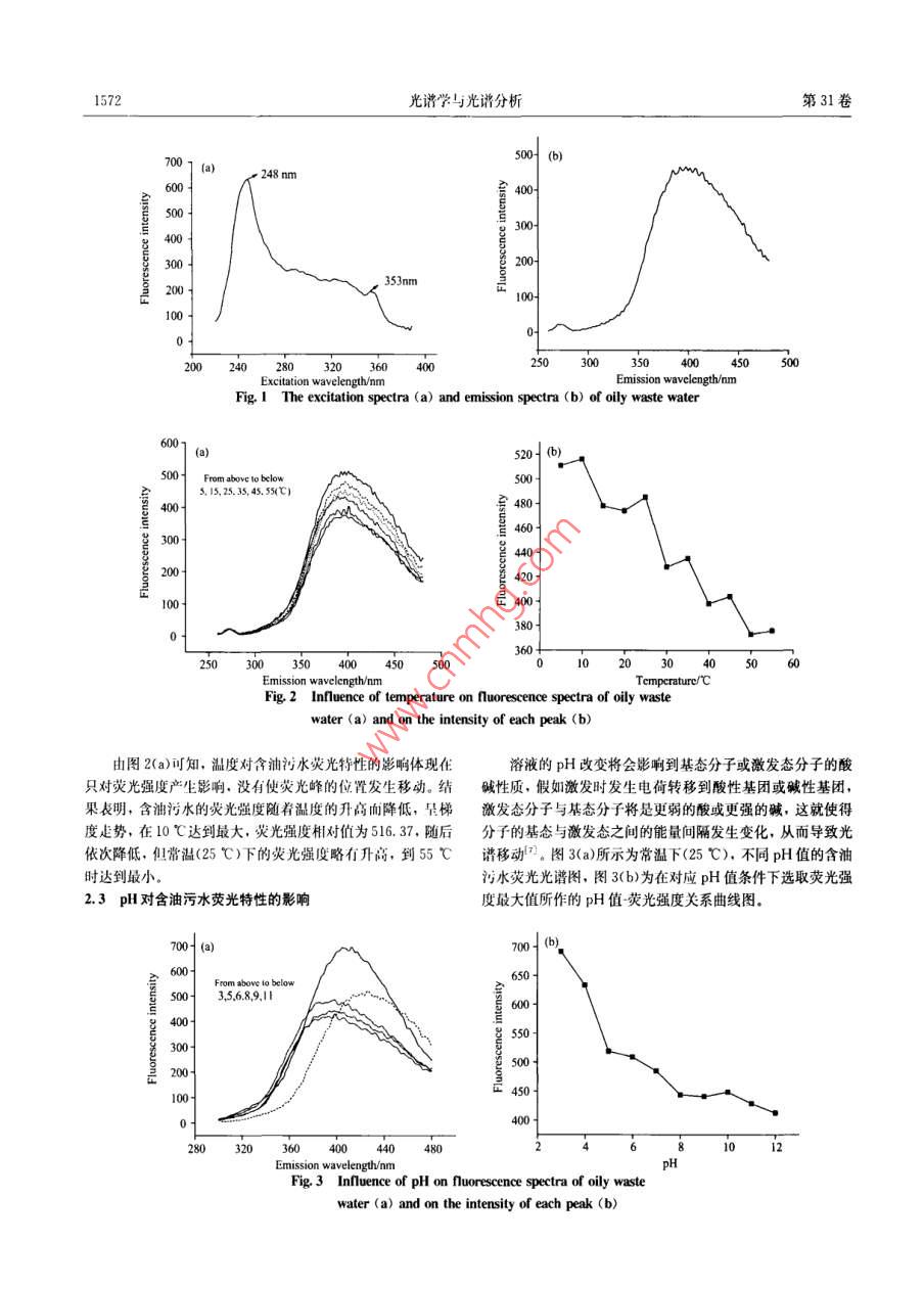 溫度、pH對(duì)含油污水熒光特性的影響 溫度、pH對(duì)含油污水熒光特性的影響
