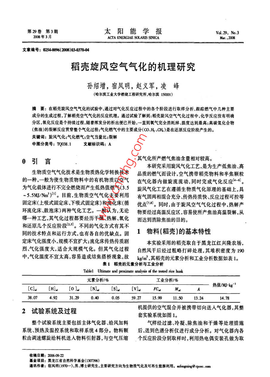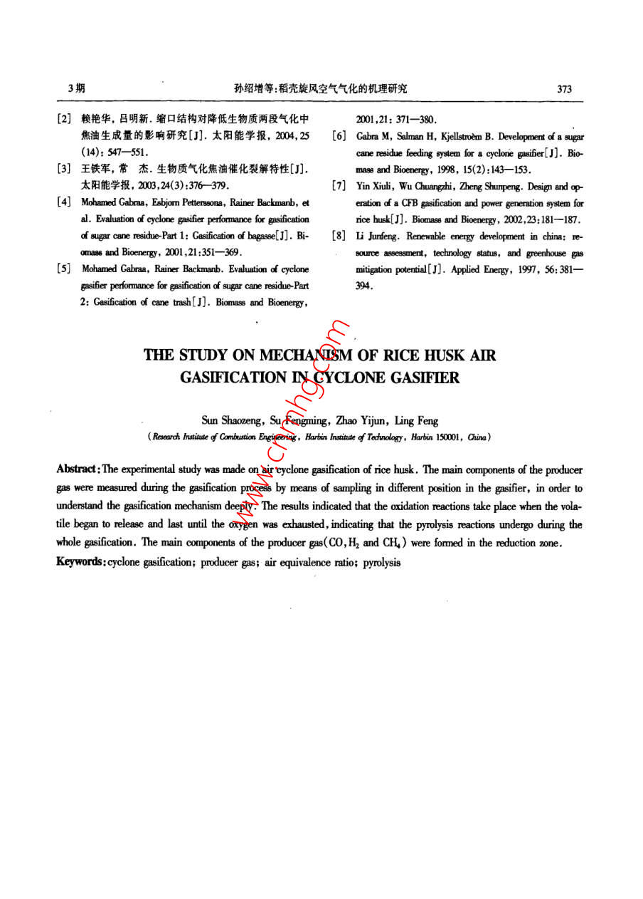 稻殼旋風(fēng)空氣氣化的機(jī)理研究