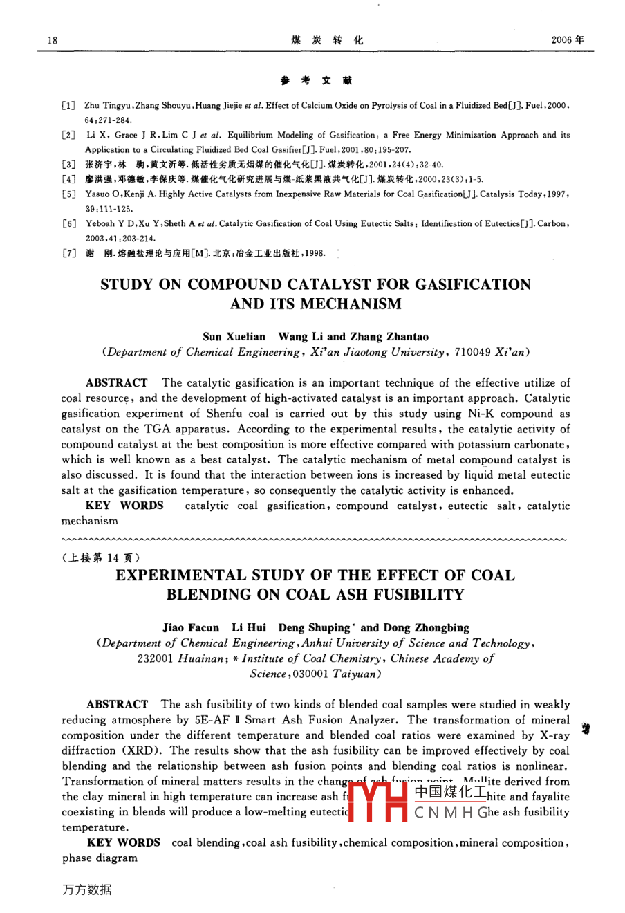 煤氣化復(fù)合催化劑研究及機(jī)理探討