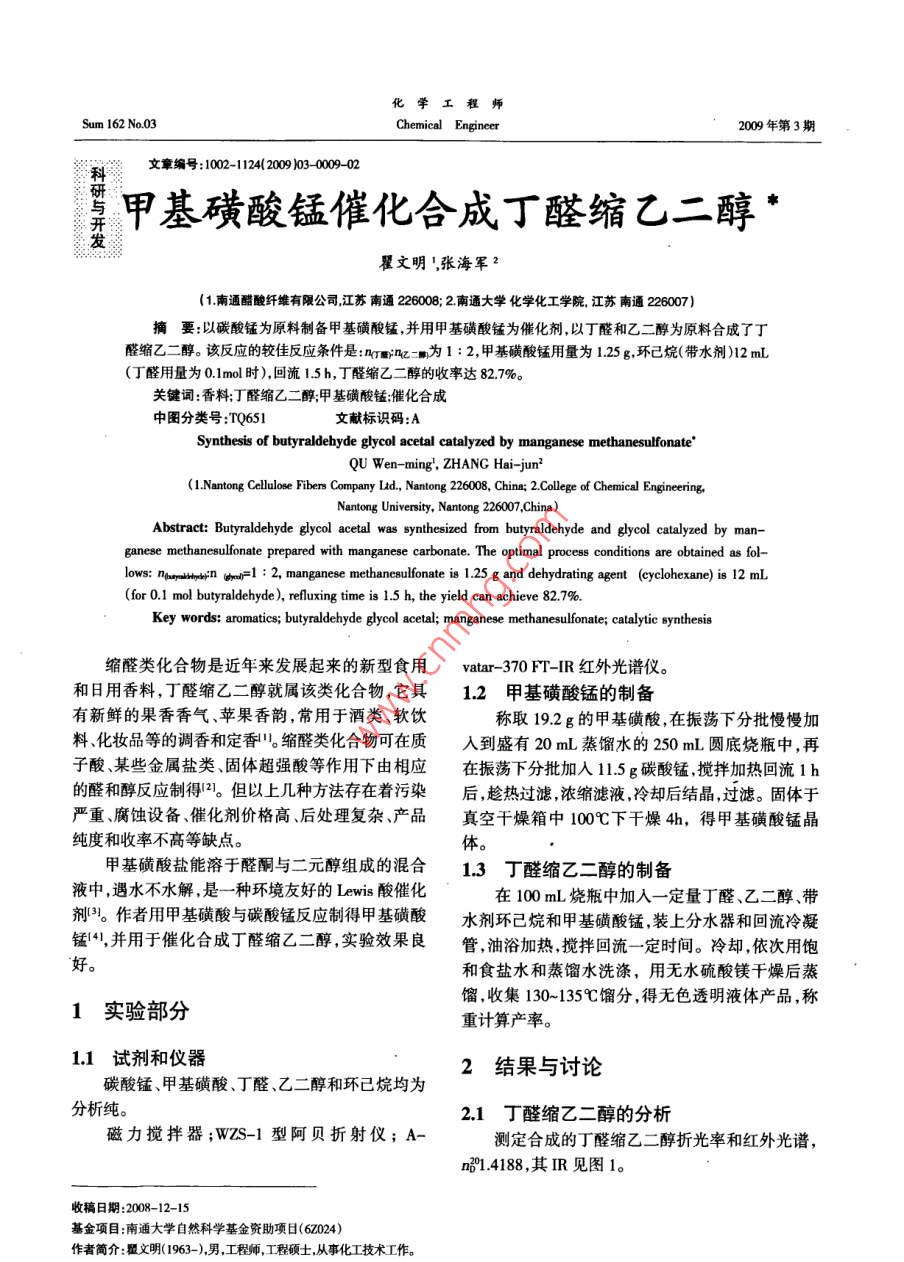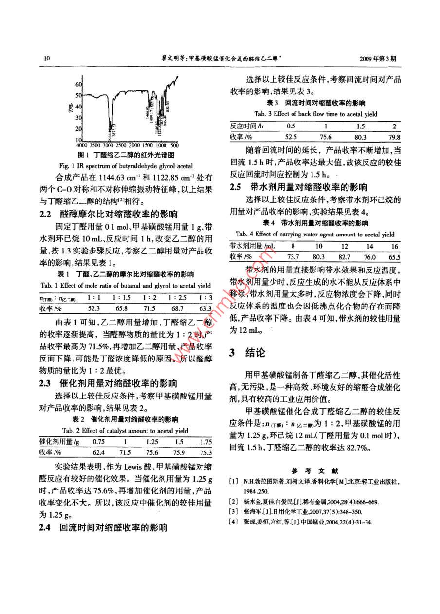 甲基磺酸錳催化合成丁醛縮乙二醇