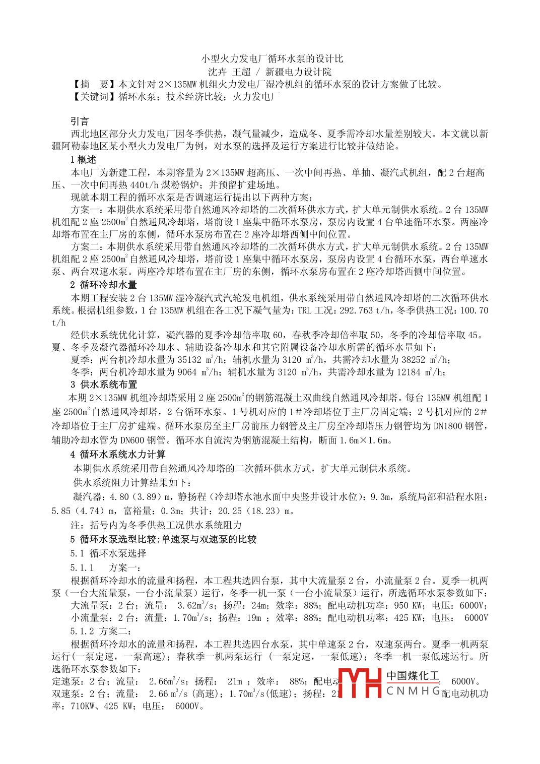 小型火力發(fā)電廠循環(huán)水泵的設計比