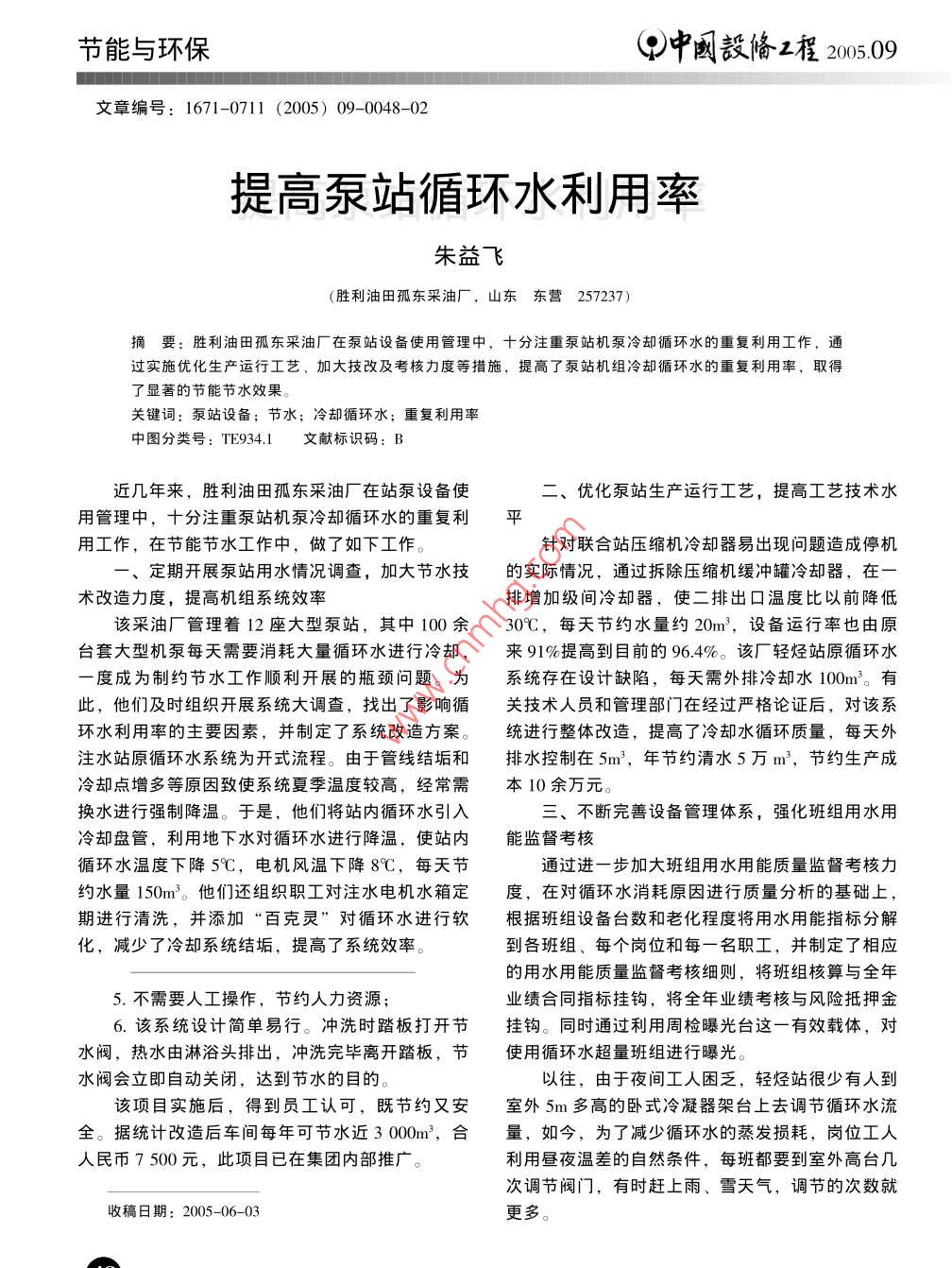 提高泵站循環(huán)水利用率