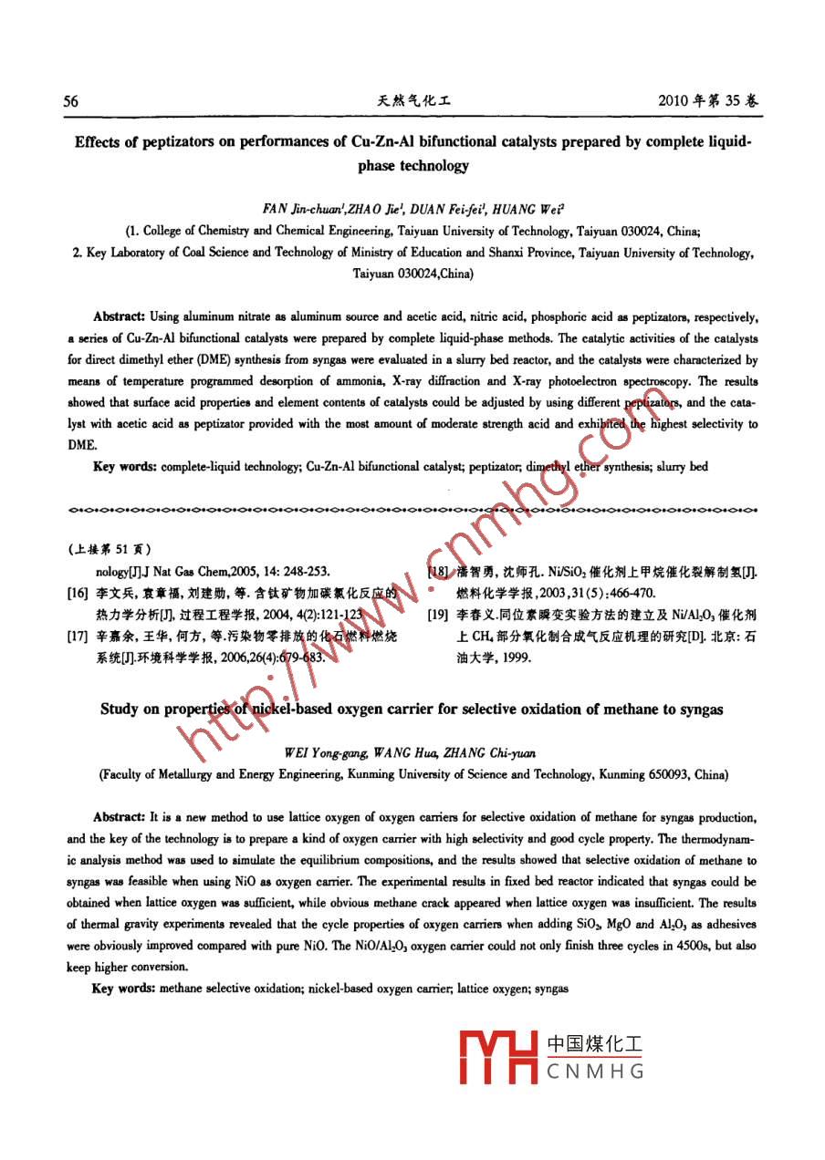 - 期刊名字:天然氣化工