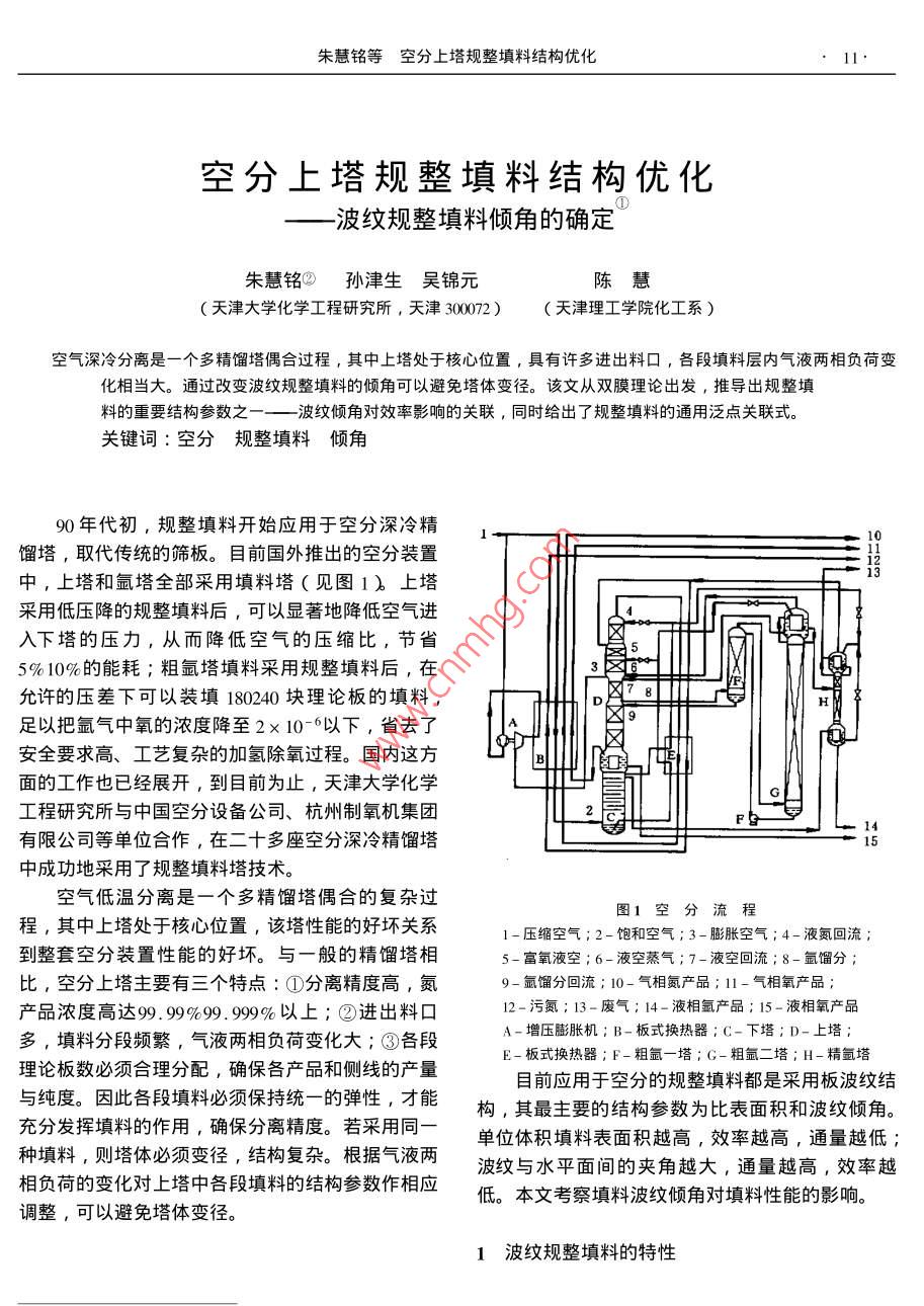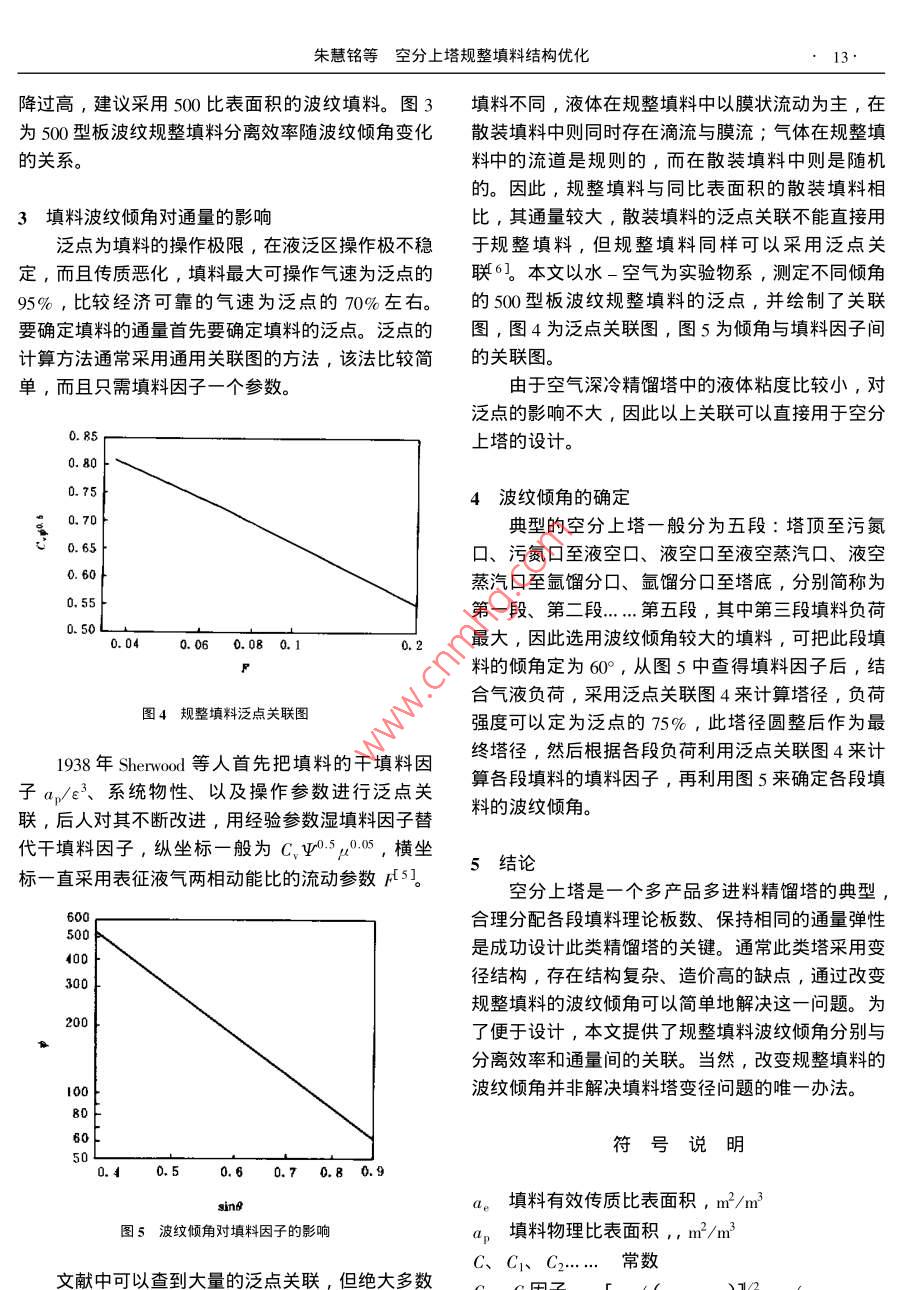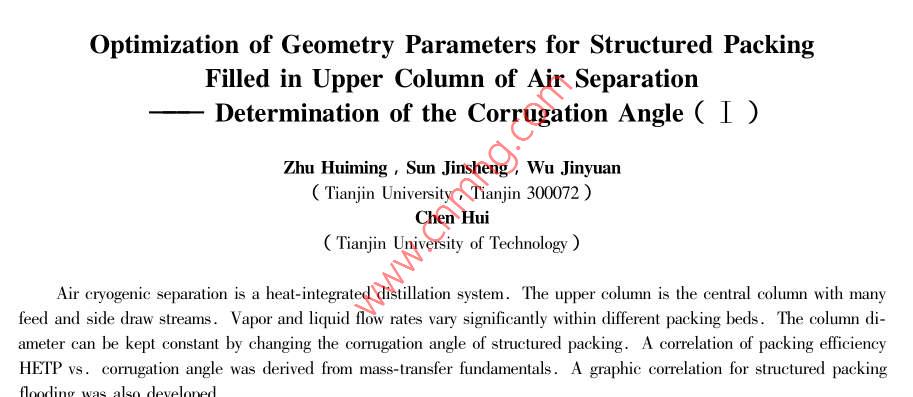 空分上塔規(guī)整填料結(jié)構(gòu)優(yōu)化——波紋規(guī)整填料傾角的確定