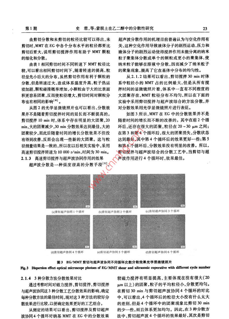 蒙脫土在乙二醇中的分散性研究