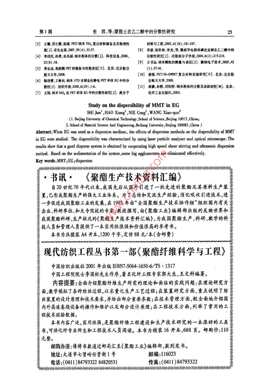 - 期刊名字:聚酯工業(yè)