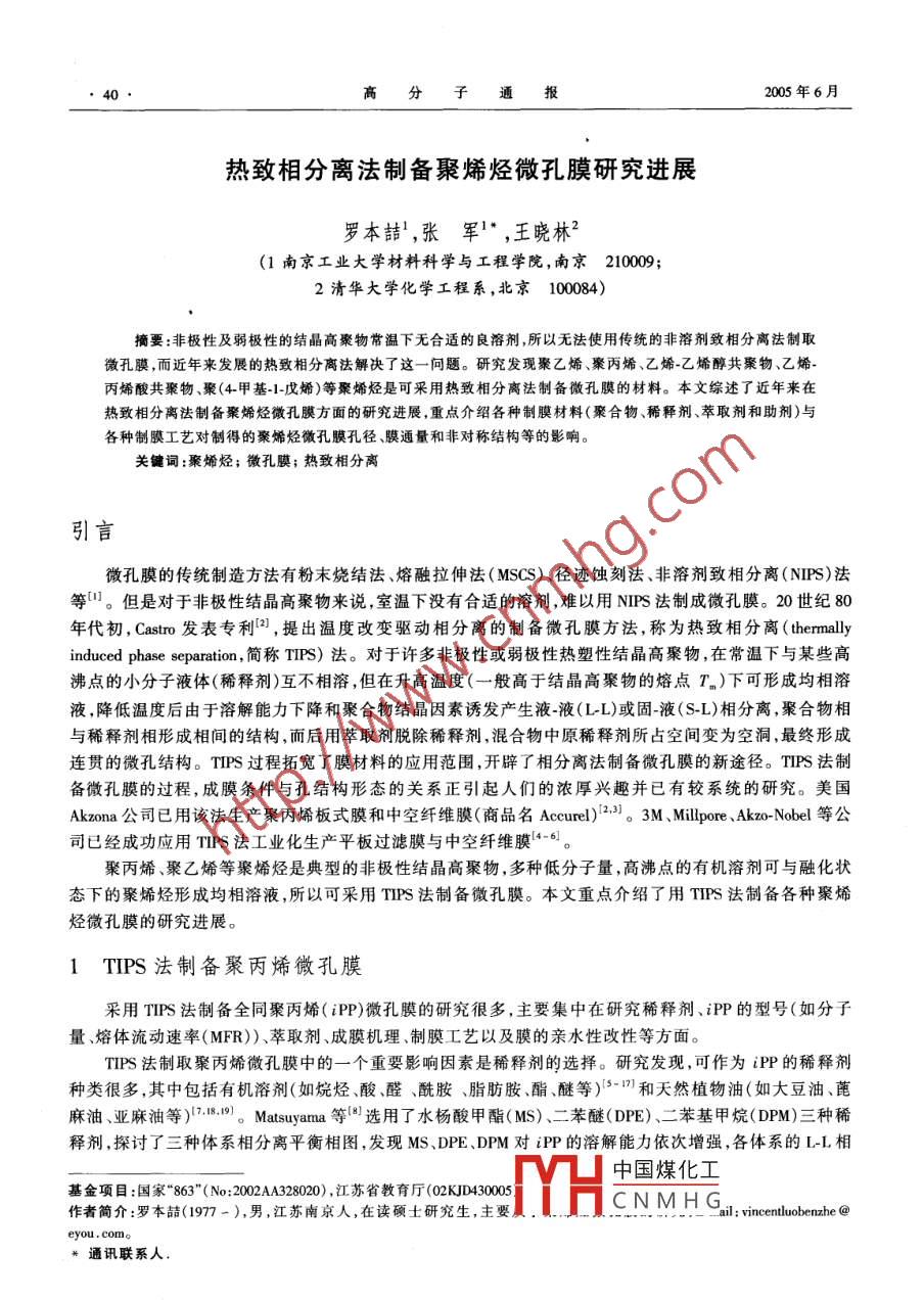 - 作者單位:南京工業(yè)大學材料科學與工程學院,清華大學化學工程系