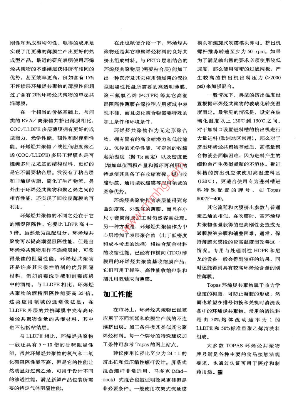 環(huán)烯烴共聚物在聚烯烴復(fù)合膜中的應(yīng)用