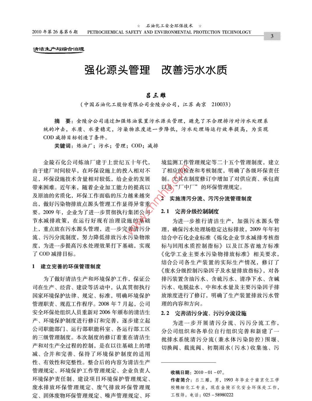 強(qiáng)化源頭管理改善污水水質(zhì)