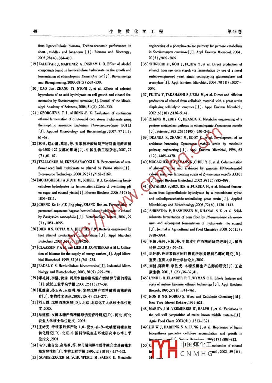 - 期刊名字:生物質(zhì)化學工程