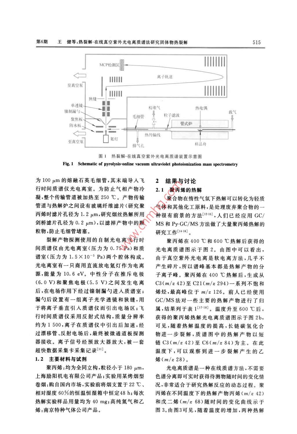 熱裂解-在線真空紫外光電離質(zhì)譜法研究固體物熱裂解