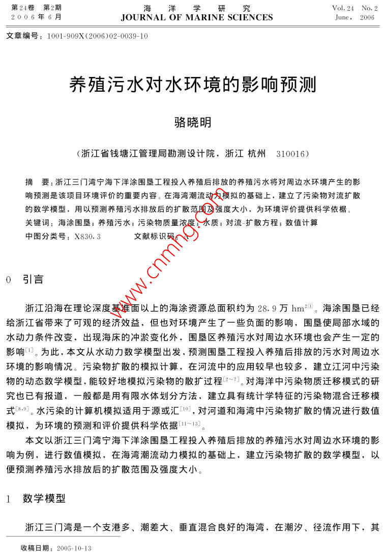 養(yǎng)殖污水對水環(huán)境的影響預(yù)測