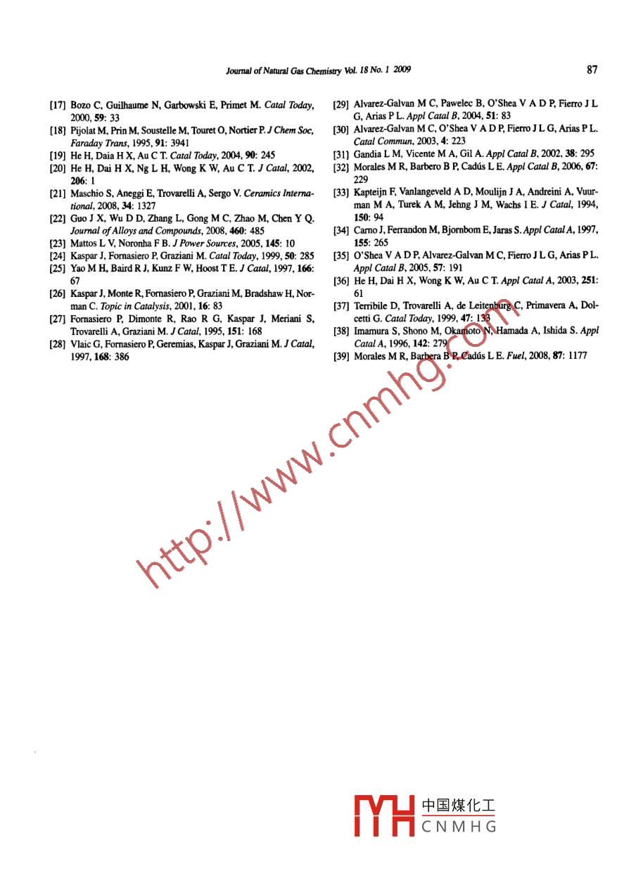 - 期刊名字:天然氣化學(xué)(英文版)