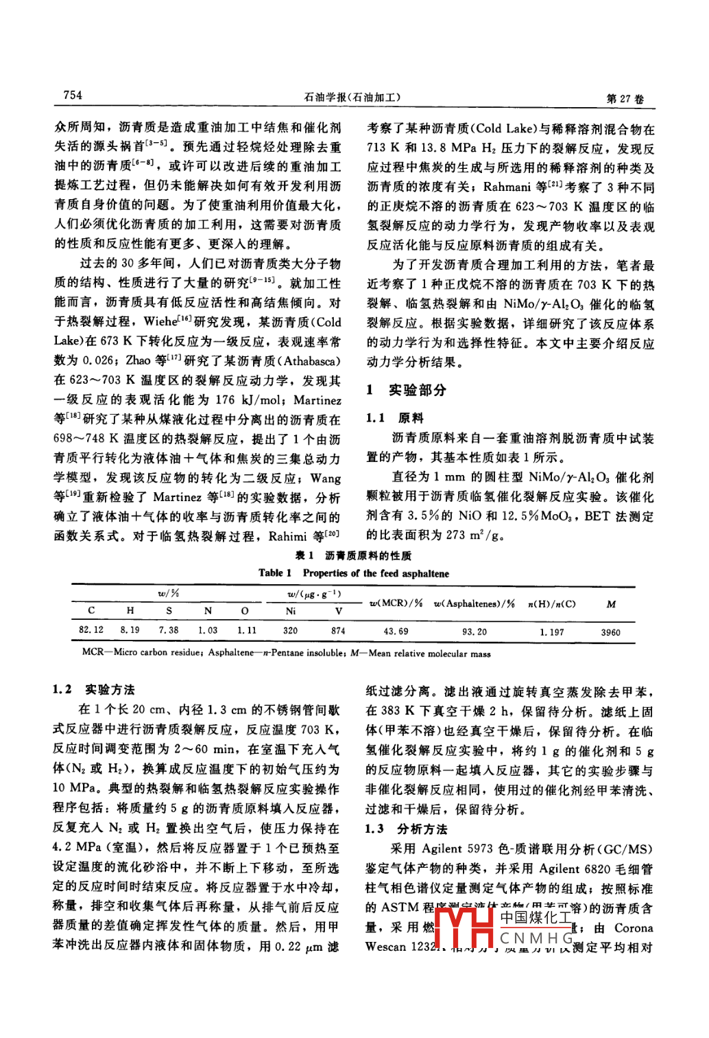 瀝青質(zhì)熱裂解、臨氫熱裂解和臨氫催化裂解反應(yīng)動力學(xué)