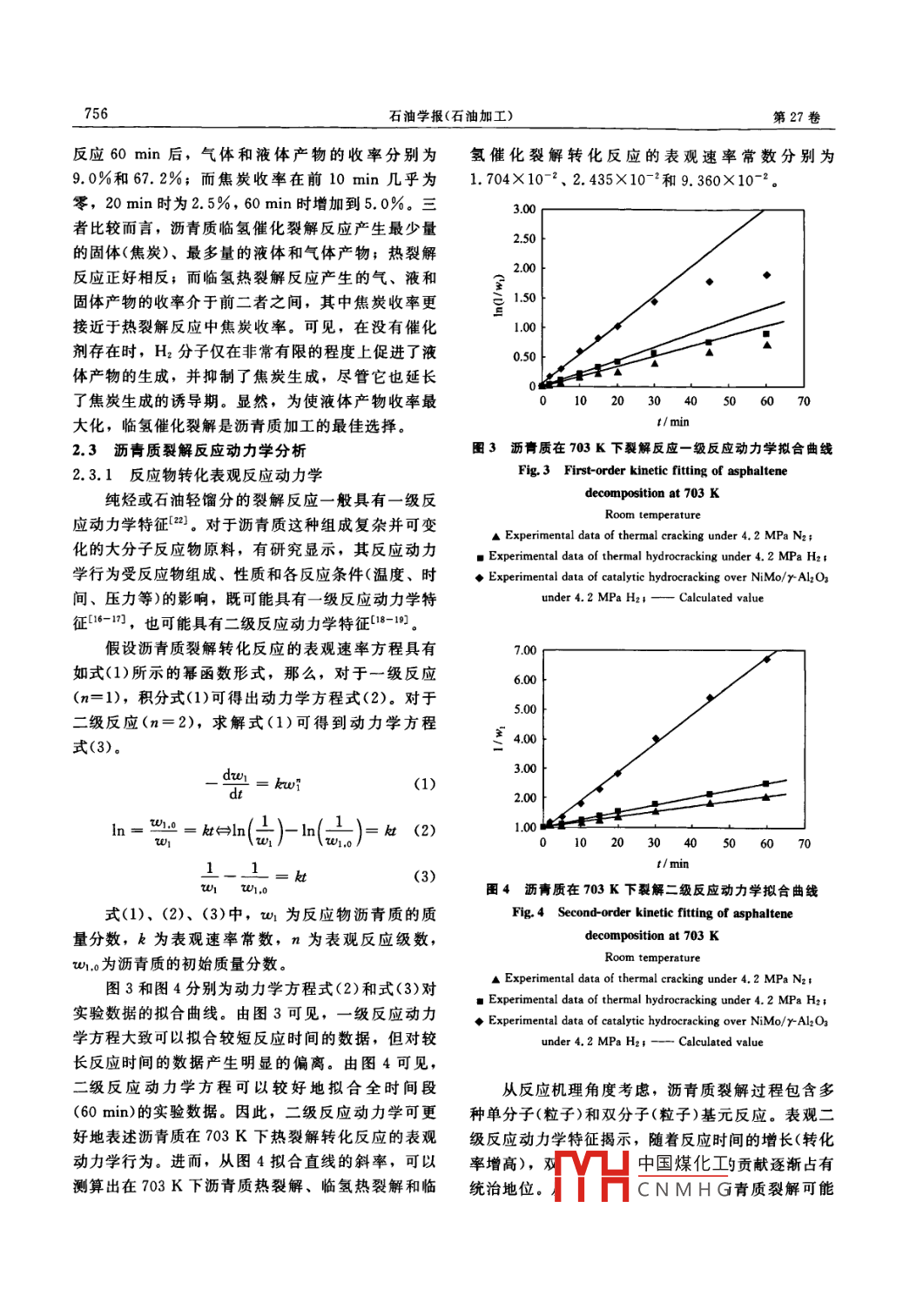 瀝青質(zhì)熱裂解、臨氫熱裂解和臨氫催化裂解反應(yīng)動力學(xué) 瀝青質(zhì)熱裂解、臨氫熱裂解和臨氫催化裂解反應(yīng)動力學(xué)