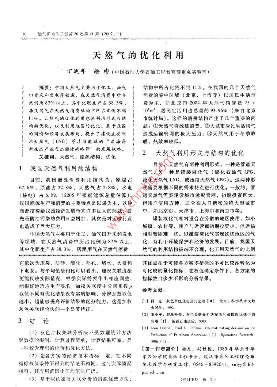 天然氣的優(yōu)化利用
