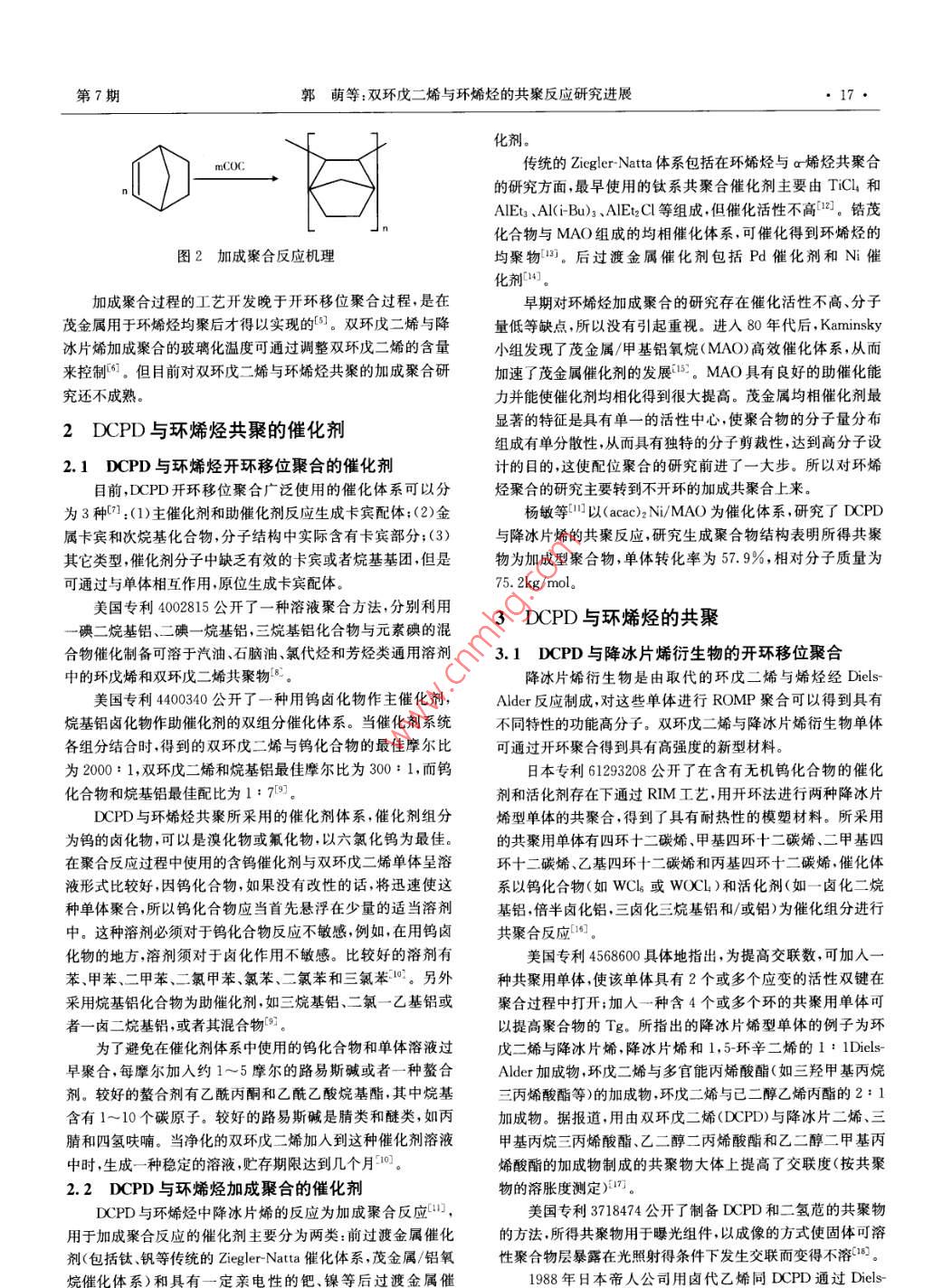 雙環(huán)戊二烯與環(huán)烯烴的共聚反應(yīng)研究進展