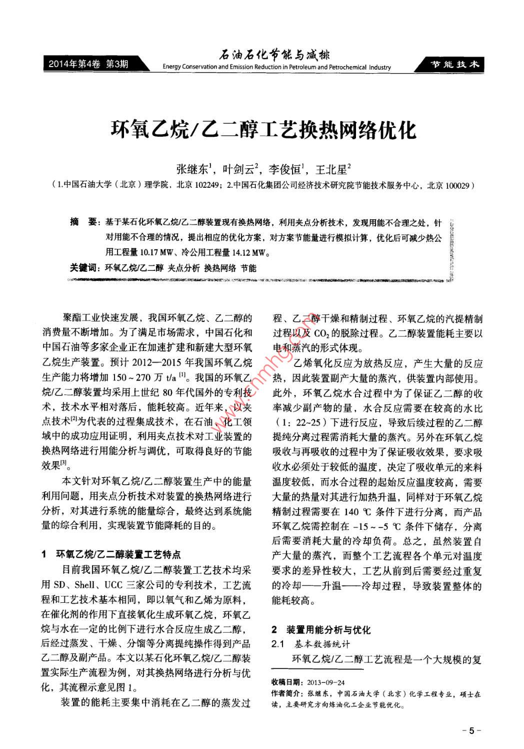 環(huán)氧乙烷/乙二醇工藝換熱網(wǎng)絡(luò)優(yōu)化