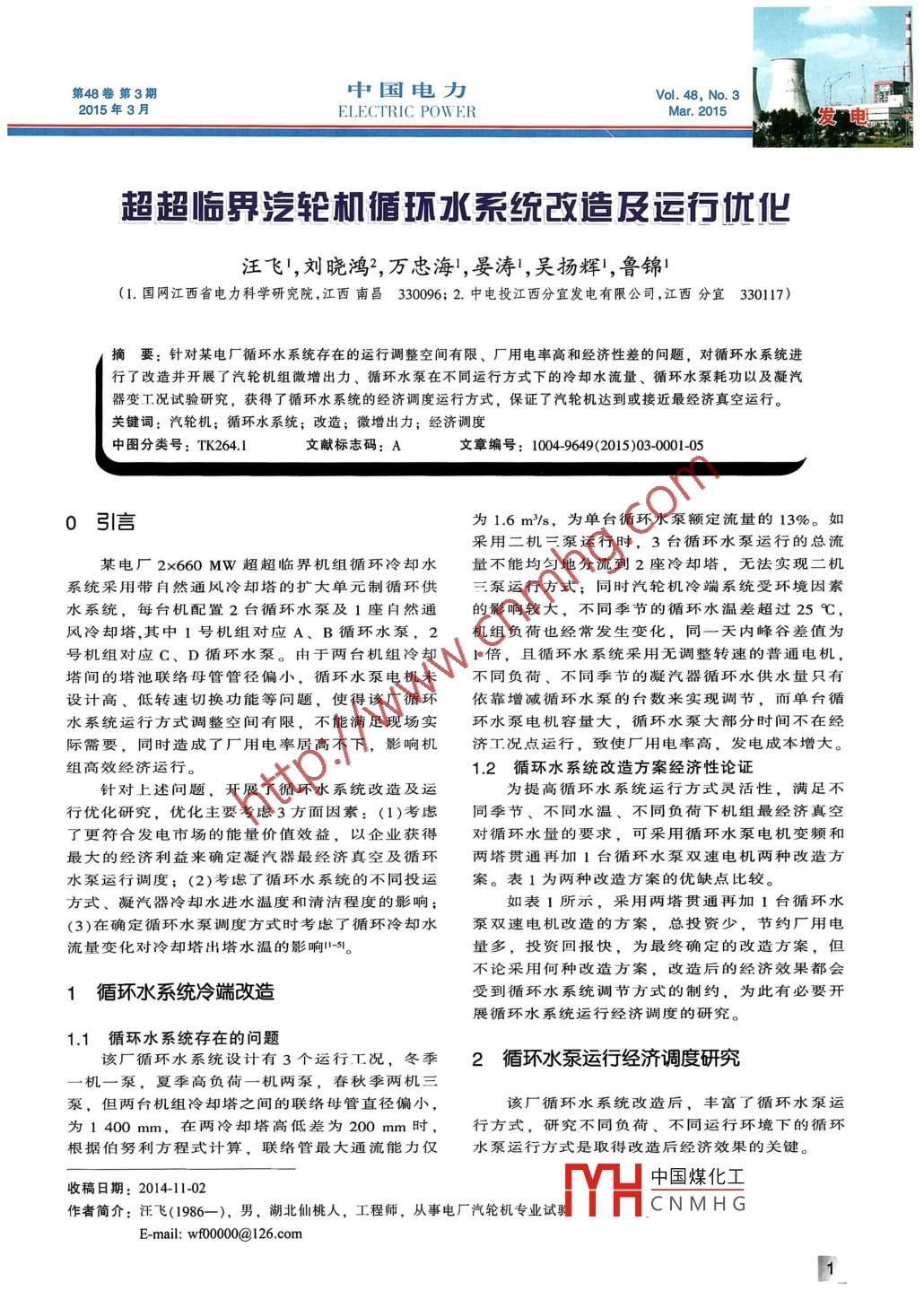 超超臨界汽輪機(jī)循環(huán)水系統(tǒng)改造及運(yùn)行優(yōu)化