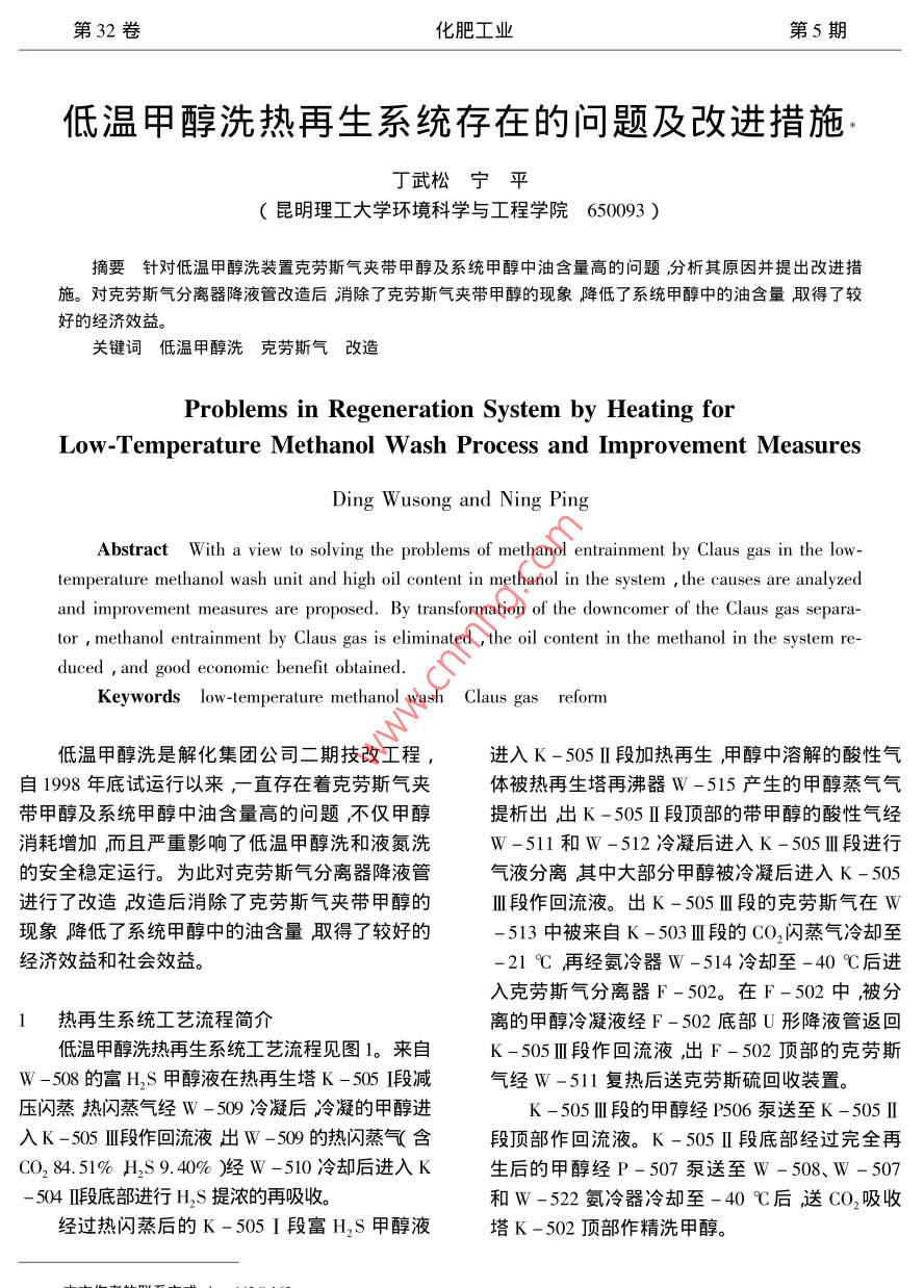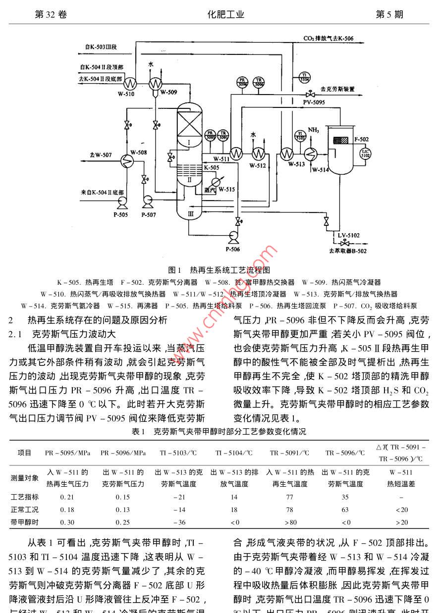 低溫甲醇洗熱再生系統(tǒng)存在的問題及改進措施