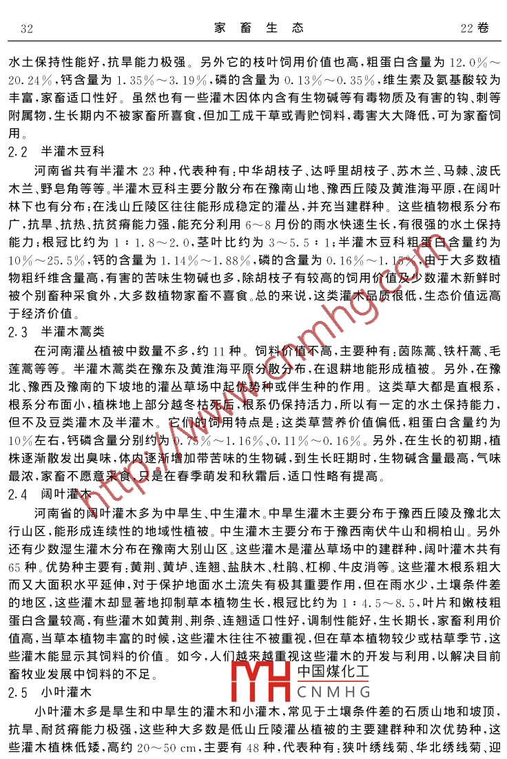 河南省灌木資源的飼用價(jià)值與生態(tài)意義