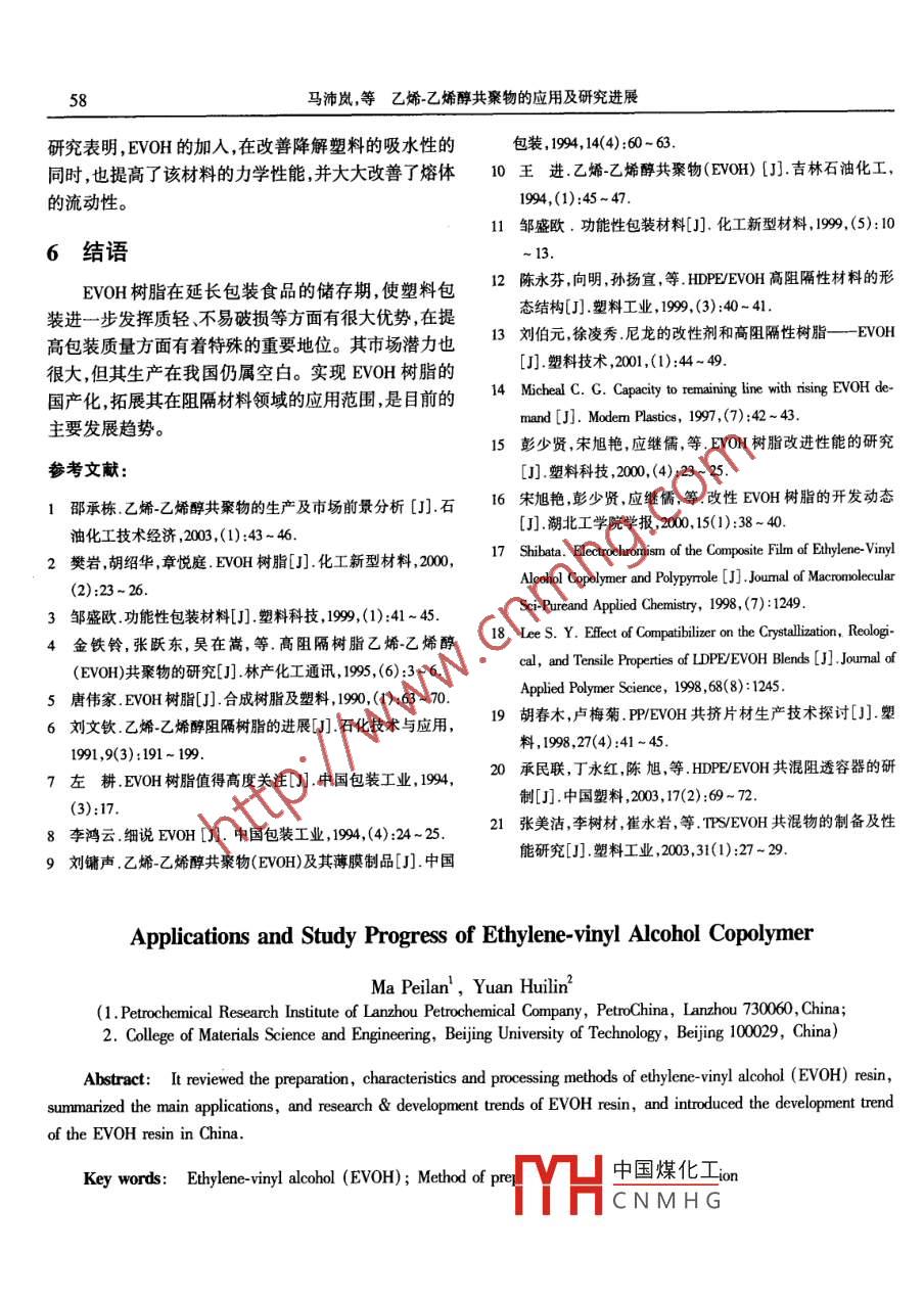 乙烯-乙烯醇共聚物的應(yīng)用及研究進(jìn)展