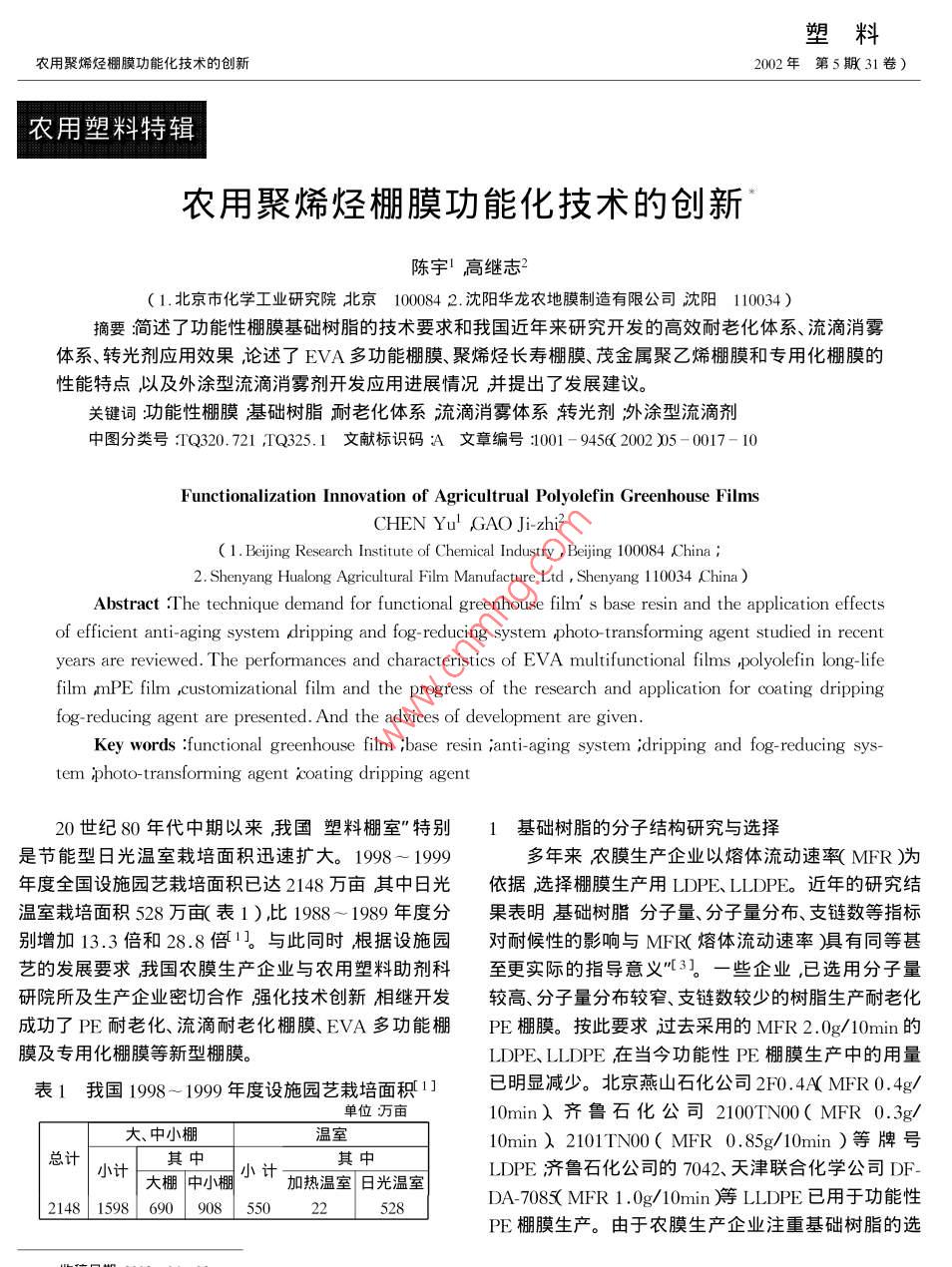 - 作者單位:北京市化學工業(yè)研究院,沈陽華龍農(nóng)地膜制造有限公司