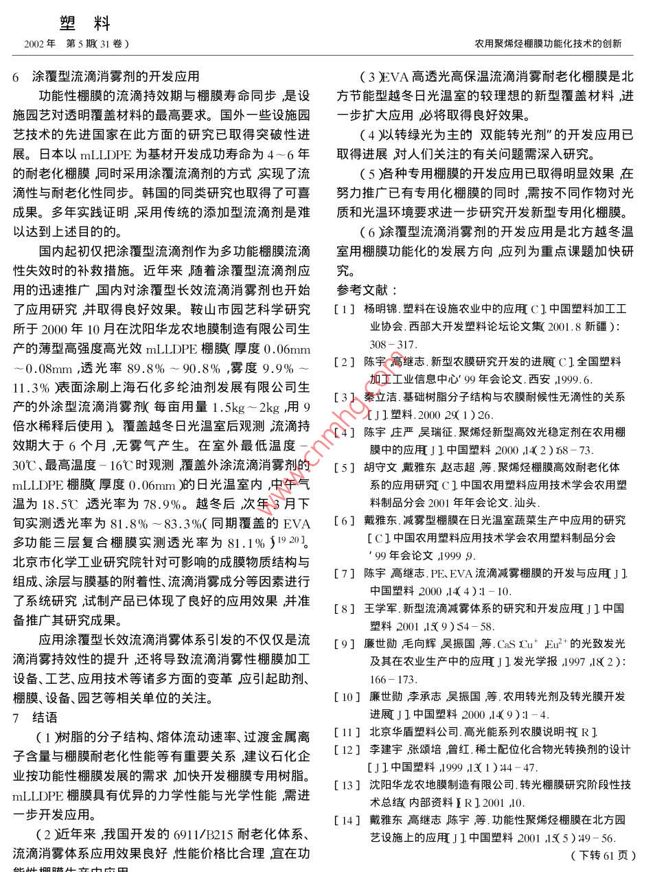 - 期刊名字:塑料