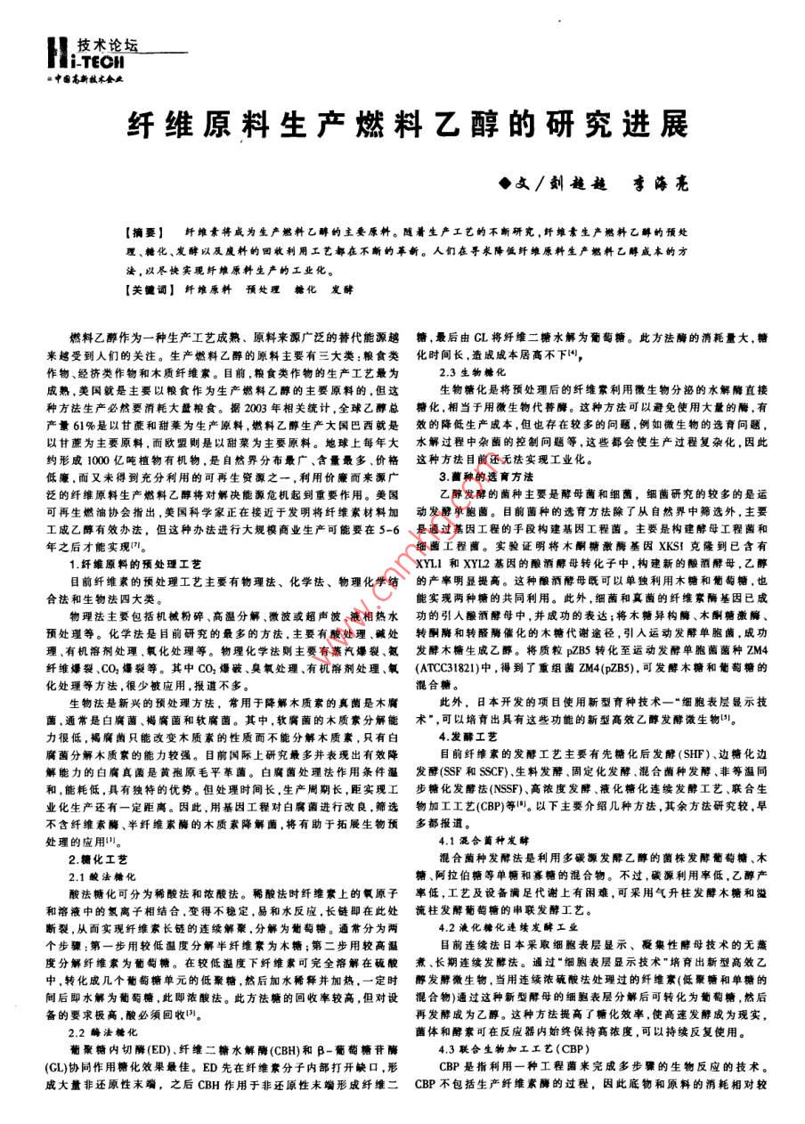 纖維原料生產(chǎn)燃料乙醇的研究進展