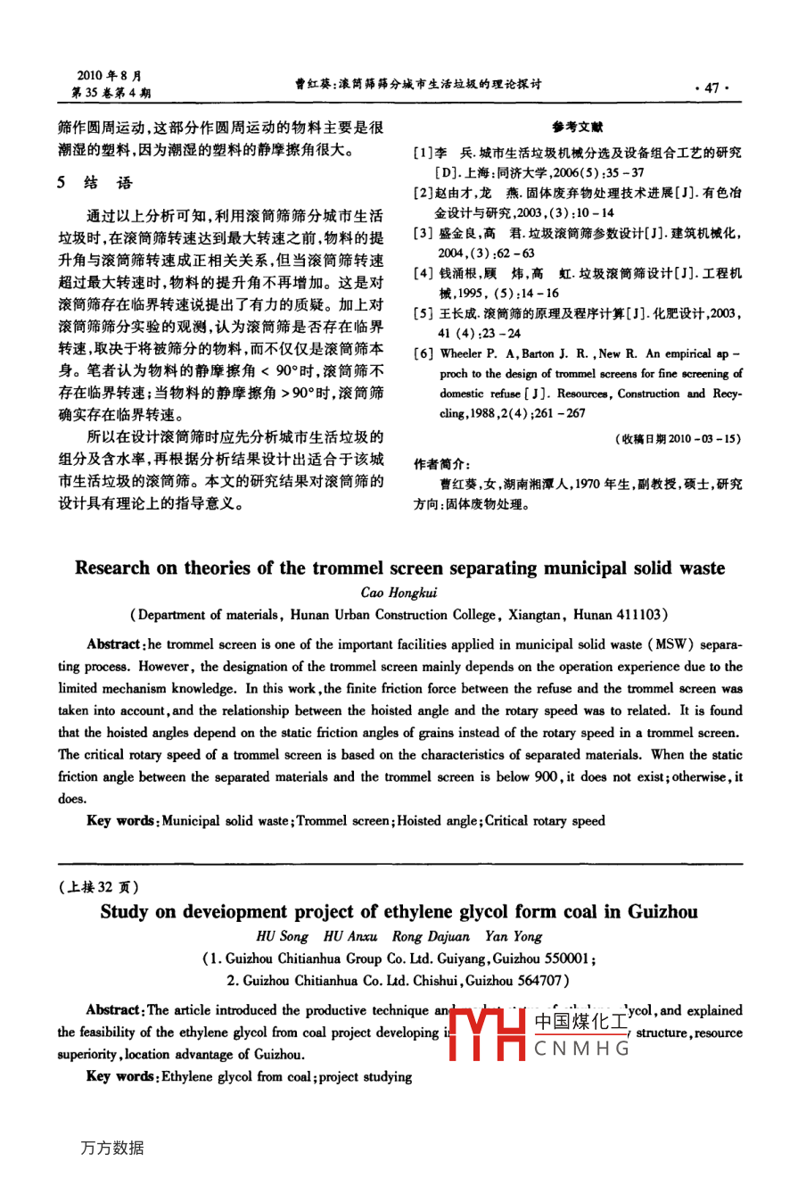 貴州發(fā)展煤制乙二醇項目的研究