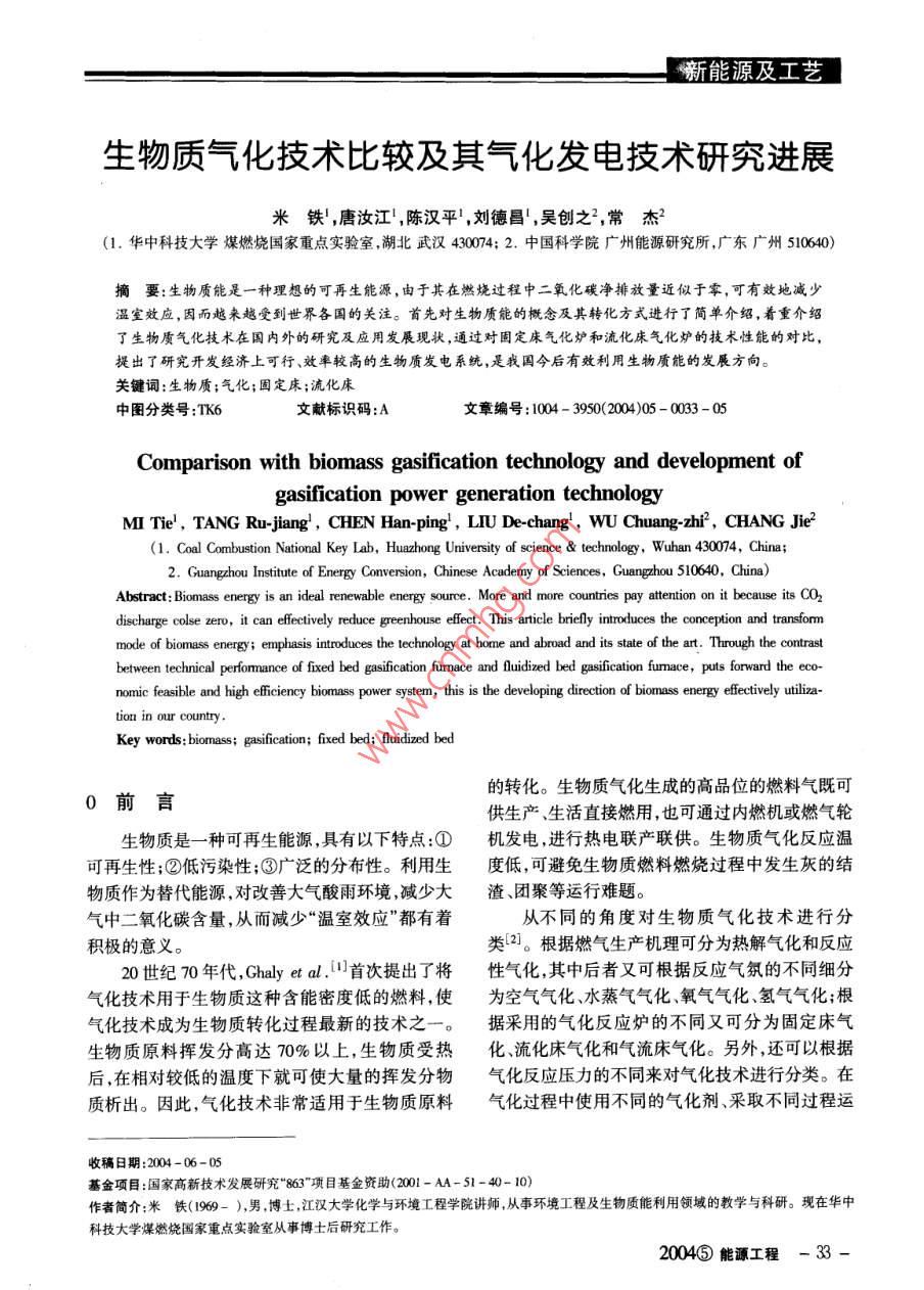 生物質(zhì)氣化技術(shù)比較及其氣化發(fā)電技術(shù)研究進(jìn)展