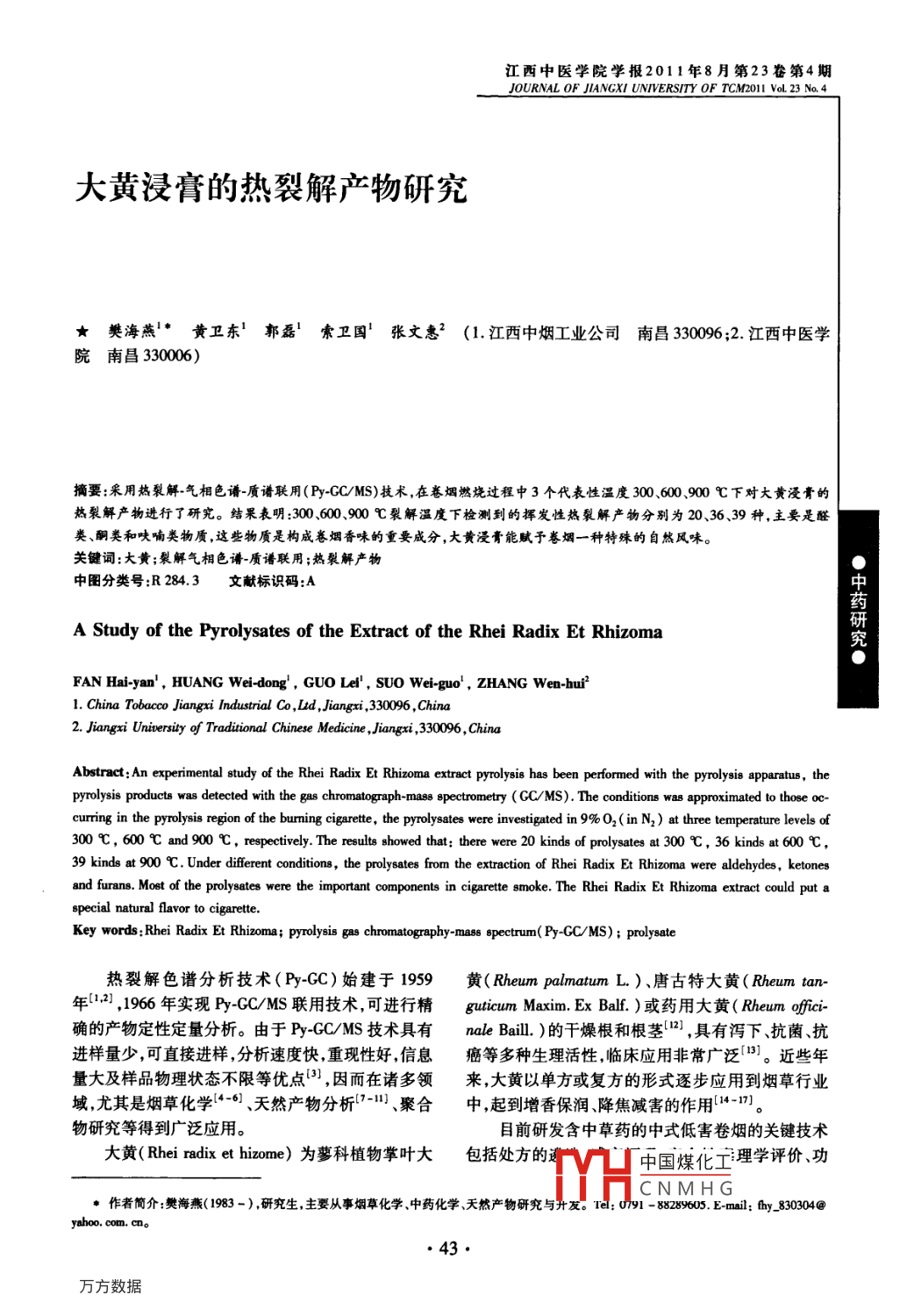 大黃浸膏的熱裂解產(chǎn)物研究