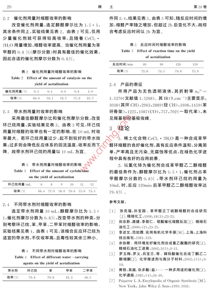 氯化鈰催化合成苯甲醛乙二醇縮醛
