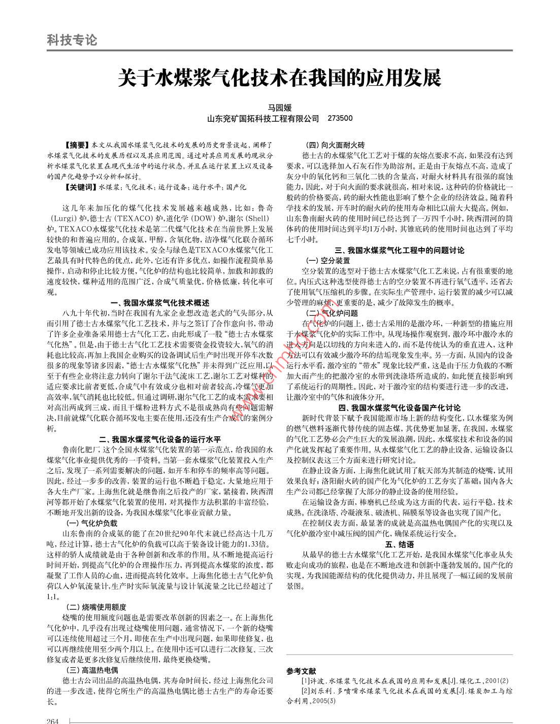 關(guān)于水煤漿氣化技術(shù)在我國(guó)的應(yīng)用發(fā)展