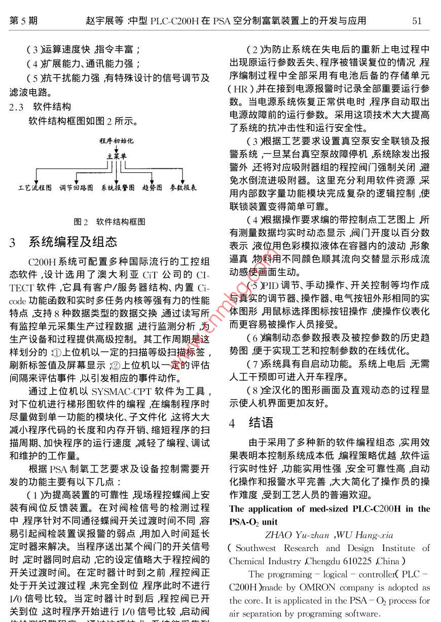 中型PLC-C200H在PSA空分制富氧裝置上的開發(fā)與應(yīng)用