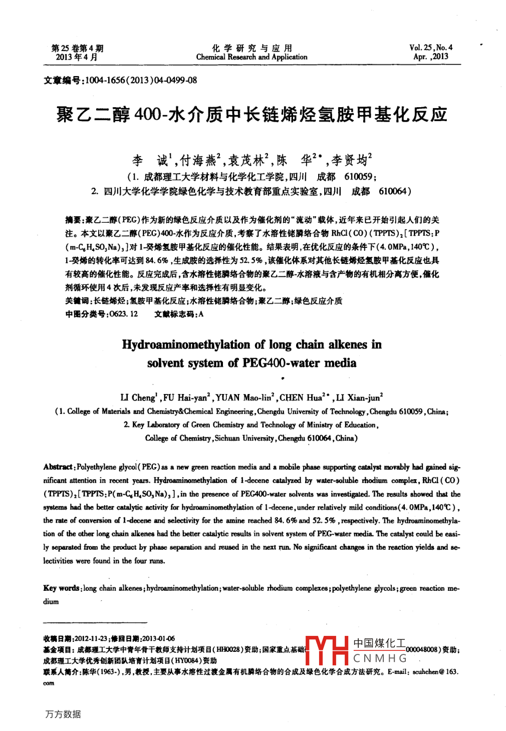 聚乙二醇400-水介質(zhì)中長(zhǎng)鏈烯烴氫胺甲基化反應(yīng)