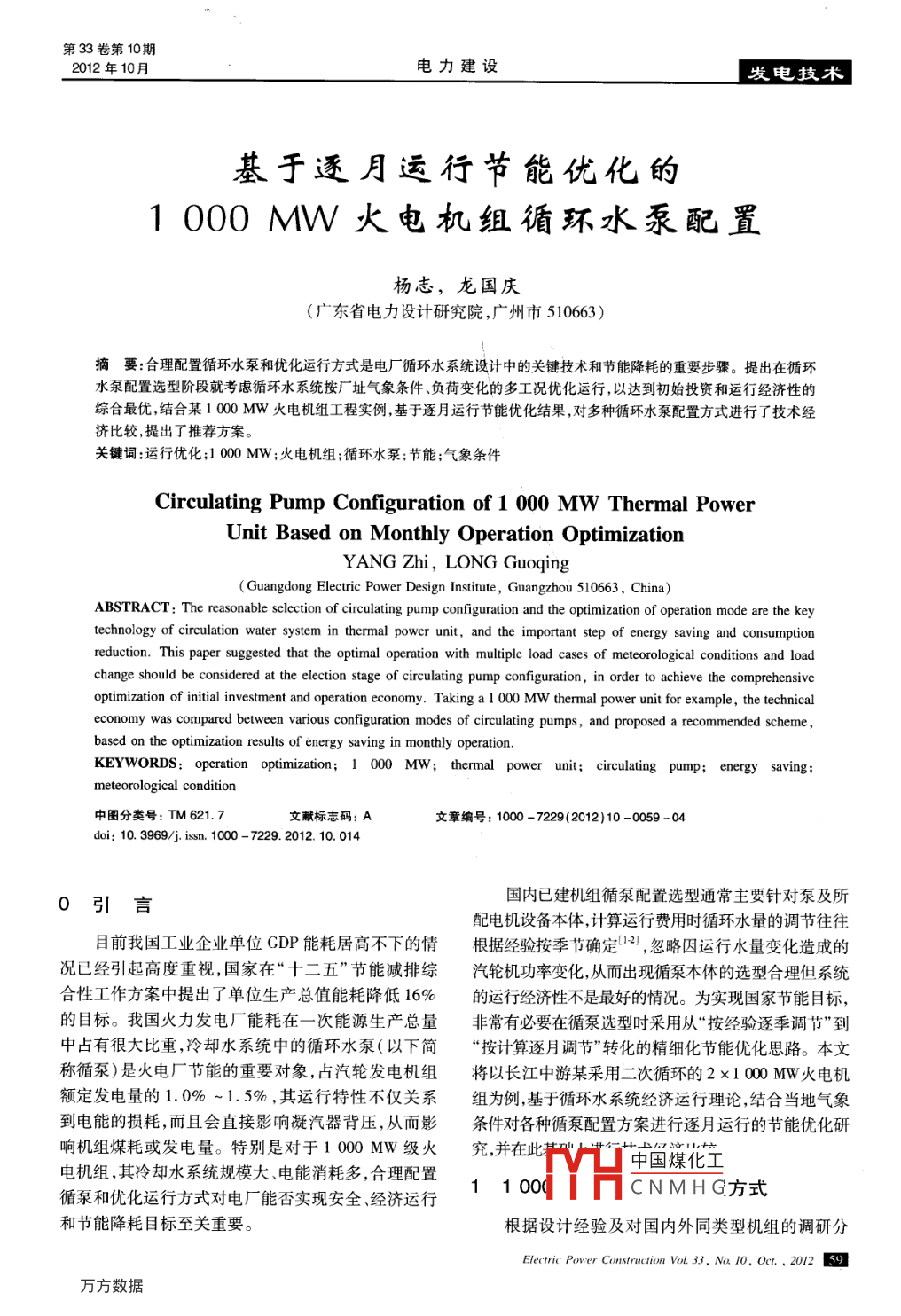 基于逐月運(yùn)行節(jié)能優(yōu)化的1000MW火電機(jī)組循環(huán)水泵配置