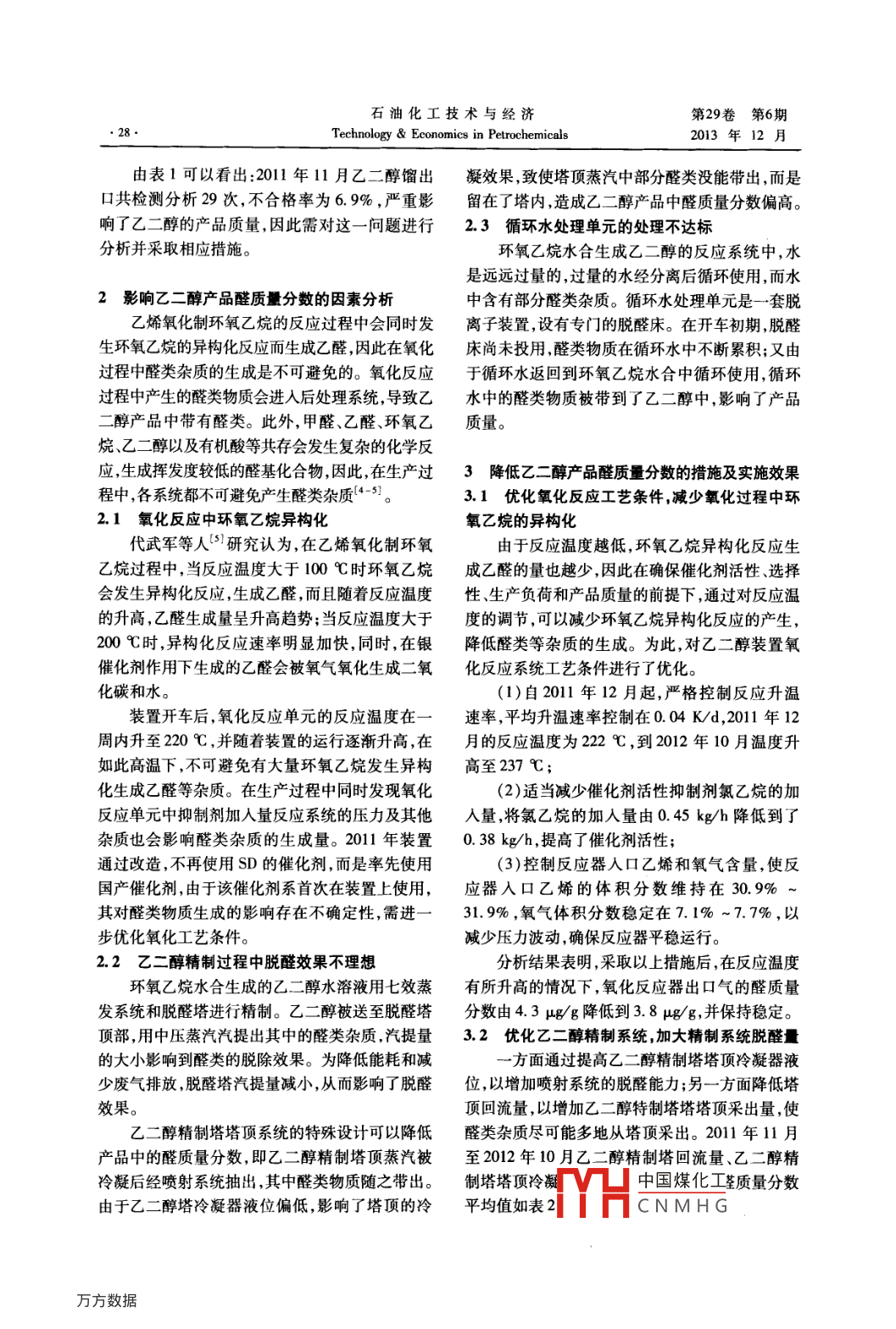 乙二醇產(chǎn)品醛質(zhì)量分?jǐn)?shù)偏高的原因分析及對(duì)策