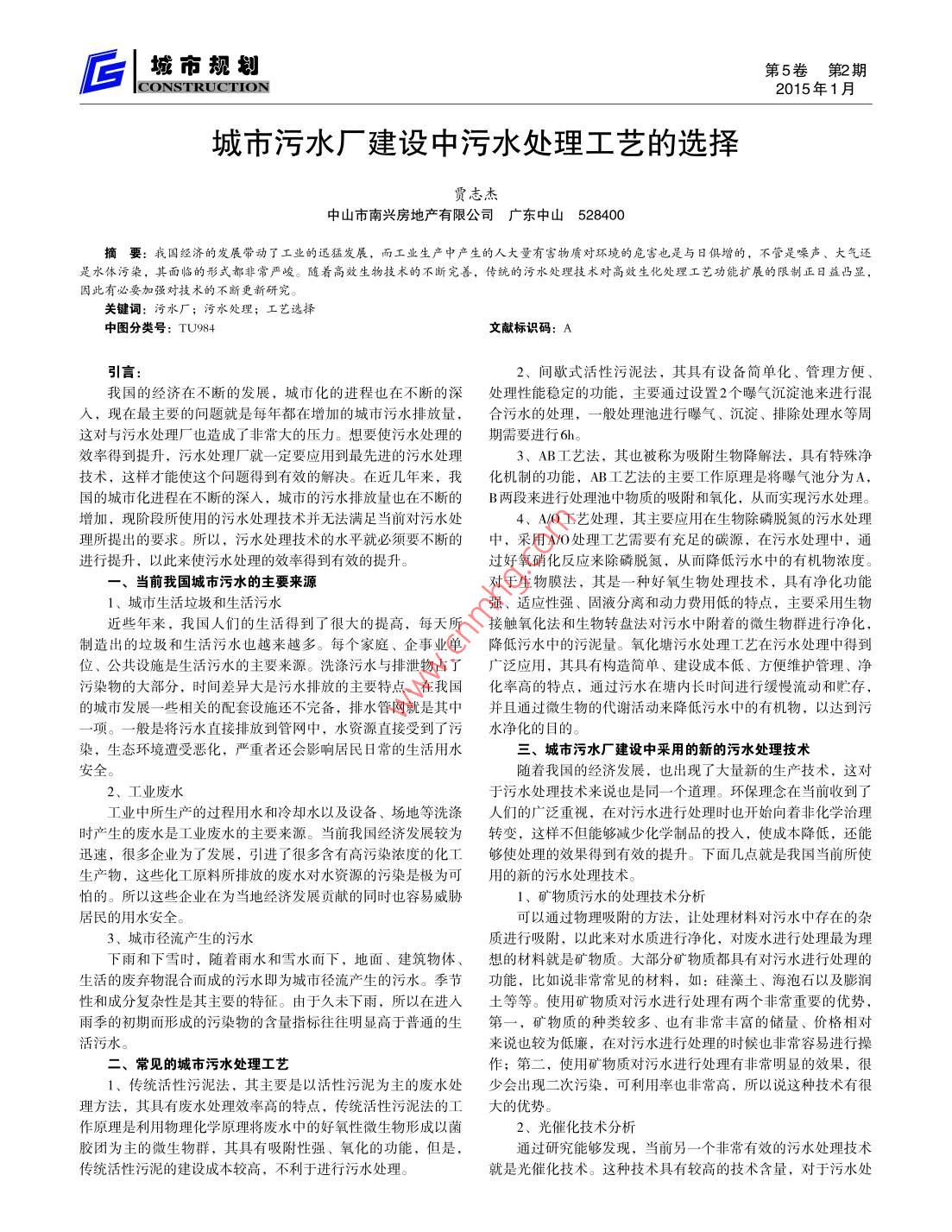 城市污水廠建設(shè)中污水處理工藝的選擇