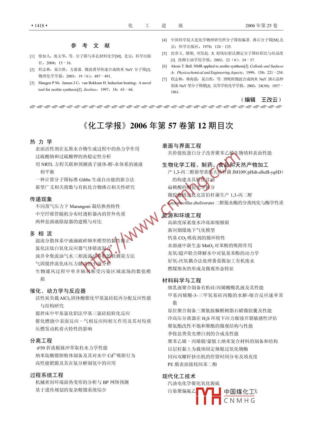 - 期刊名字:化工進(jìn)展