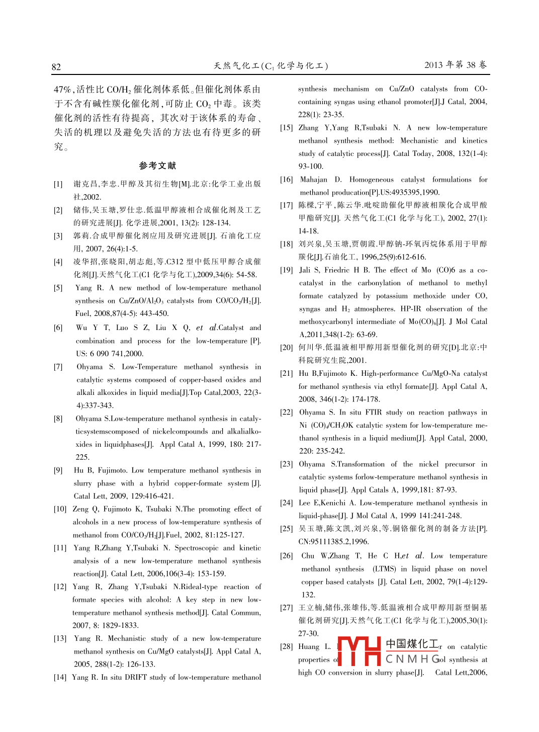 低溫液相甲醇合成催化劑的研究進(jìn)展