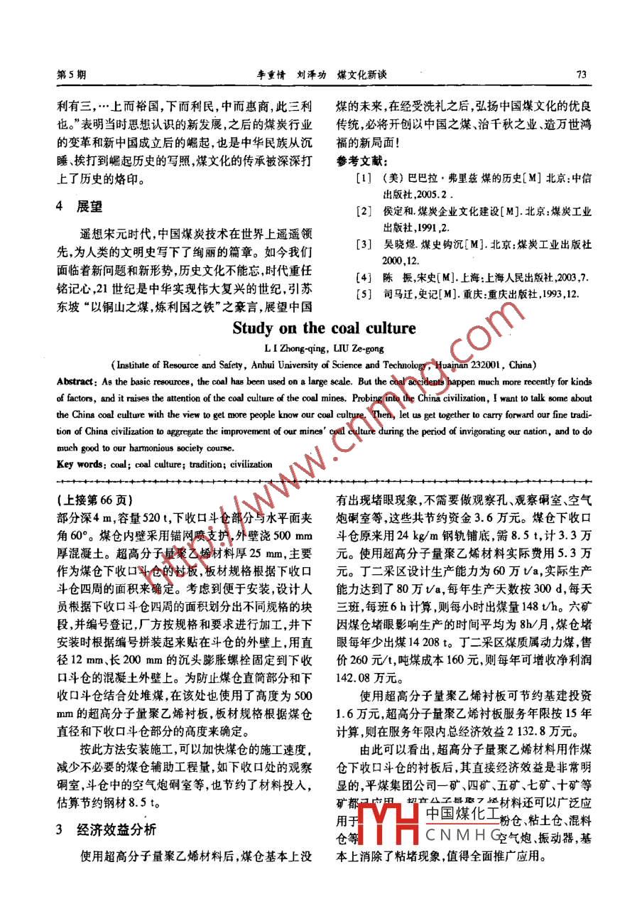 第5期李重情劉澤功煤文化新談71筆煤炭科普了煤文化新談李重情,劉澤功(安徽理工大學(xué)能源與安全學(xué)院,安徽淮南232001)嘀要:煤炭作為我國的基礎(chǔ)能源,正處于大力開采和利用階段,但由于種種因素,目前煤炭行業(yè)事故頻發(fā),引起各界對企業(yè)“煤文化”的深思。從中國文明的文化遺產(chǎn)入手,點播中國悠久的煤文化,可激起大家對優(yōu)秀煤文化的全新認識,從本源上升華煤炭的文化角色,促進煤炭企業(yè)“煤文化"的發(fā)展,為我國和諧社會的進程添磚加瓦。關(guān)鍵詞:謀;煤文化;傳統(tǒng);文明中圖分類號:G112:P618.11文獻標識碼:A文章編號:1671 -749X(2007)04 -0071 -03人謂之煤,山西人謂之石炭。平定所產(chǎn)尤勝,堅黑而0引言光,極有火力,史稱女媧氏煉五色石以補天,今其遺煤是植物遺體經(jīng)過千錘百煉而形成的寶藏,在灶在平定之東浮山,予謂此即后世燒煤之始?!睘榧o人類改造世界的過程中,煤作為一種特殊能源而世念女媧給天地萬物帶來的勃勃生機,后人在煉石補世代代引起關(guān)注,煤炭開采歷來非常艱辛,在這種人天的遺址 上蓋起了媧皇廟。和煤的長期歷史交融的過程中形成了一種悠久、深.從此,煤文化與女神開天辟地聯(lián)系在了一起,人厚而獨特的文化!煤可以說是中華民族傳統(tǒng)美德的們發(fā)明了棒槌火-火的盛會,在農(nóng)歷元宵前后三天象征,我們的祖先自存在開始就發(fā)現(xiàn)了它的存在,其隆重紀念給我們帶來光明的女神。陸深在《浮山遺利用價值、經(jīng)濟價值、社會歷史價值隨同我們前進的灶記》記載著 這樣盛大的場面:“歲上元之夕,無論步伐,推動著中華文明的發(fā)展。大小,家價置- -爐,當戶高五六尺許,實以雜石,附以石炭,至夜煉之達旦,火焰焰然,光氣上屬,天為之1優(yōu)美傳說赤,至今不廢也,是謂之補天。”《壽陽縣志》載:“上在人類初期,由于和自然界的抗爭,人類對火有元前后三日,坊肆里巷,俱于門前塑泥作彌勒判官、著特殊的崇拜情感,煤的發(fā)現(xiàn)利用使人類的生存得獅子及棒槌等樣,圈石炭焚之通宵不息,名曰塔火,到滿足,同時也寄托了人們對光明的追求和對溫暖- -曰棒槌火。”的渴望。中國早期各種的神話和傳說以其優(yōu)美而浪2歷史積淀漫的形式表達了煤的重要性,以及我們祖先對美好生活的向往。傳說女媧在大荒山無稽崖煉成高十二煤的認識。煤是由大量植物遺體經(jīng)過復(fù)雜的物丈、見方二十四丈的五彩石三萬六千五百零一塊修理和化學(xué)作用轉(zhuǎn)變而成的,必要條件有溫濕的氣候、補天地,其燒煤遺灶至今仍留在山西平定縣的東浮植物的繁殖、適宜的地形和地殼運動。自然界的植山上,開中華用煤之先河。明翰林大學(xué)士陸深在物分兩種-低等植物和高等植物,其中低等植物《河汾燕閑錄》載:“石炭即煤也。東北人謂之楂,南(如菌類、藻類等單細胞生物)形成腐泥煤類,高等植物(如苔蘚植物、種子植物等多細胞生物)形成腐植煤類這些性的警世期在我國地質(zhì)史上有14個,收稿日期:2007 -07 -21基金項目:安徽省高??萍紕?chuàng)新團隊計劃項目(礦業(yè)安全技術(shù)其中中國煤化工疊紀、早-中侏羅2006KJ005TD)紀和HCNMHG應(yīng)煤系地層中貯;作者篙介:李重情<1982-),男,江西樂平人,碩土,安徽理工大學(xué)能源與安全學(xué)院講師。存的煤炭資源占我國煤炭資源總量的98%以上,煤72陜西煤埃2007年層氣資源占我國煤層氣資源總量的99.5%以上。紀,遠遠落在中國的后面。煤在割斷臍帶掙脫大地懷抱的同時,也就印上到乾隆盛世又呈現(xiàn)出另一個高峰,煤窯數(shù)量煤了人類勞動的印記,顯示出它的多種功效和價值,不炭產(chǎn)量以及工人數(shù)量都成倍增長,產(chǎn)地遍及全國,采同時代對煤的使用情況反映了社會發(fā)展進步的情煤技術(shù)日趨完善,如《彰德府志》載:“安陽縣龍山出況,成為煤文化逐步積淀的過程。就煤的稱謂而言,石炭,人穴取之無窮,取深數(shù)百丈,必先見水,水盡然由于我國歷史悠久,地域廣袤,先后有十幾種之多,后炭可取也?!辈擅杭夹g(shù)的改進和煤炭開發(fā)利用水如:石涅、涂石、黑丹糜石黑石脂、畫眉石、石炭、焜.平的逐步發(fā)展,促進了冶鐵、熔銅、制陶釀酒、磚瓦、炭、鐵炭、蘭花炭、黑金、烏金石等,見《中山經(jīng)》載:煮鹽等行業(yè)的發(fā)展,在社會發(fā)展進步中扮演著越來“風(fēng)雨之山,其上多白金,其下多石涅.”“張衡《東京越重要的角色。賦》載:“溫液湯泉,黑丹石緇?!薄吨焓贰份d:“禁人私清代后期,西方列強的侵人打破了我們的寧靜, .售峻青白鹽之禁,并邊舊令入中鐵炭瓦木之類,皆重在西方科技的影響下,兼有外擾內(nèi)亂的大環(huán)境,煤炭為法以絕之?!钡?。開采出現(xiàn)了新格局,漸漸進入了機器時代,雖然帶有煤的分類。明宋應(yīng)星《天工開物》“煤有三種:很大的依賴成分,也促進了我國民族企業(yè)的發(fā)展,今有明煤、碎煤、末煤。”《米脂縣志》“炭有數(shù)種,其大天我們站起來 了,煤炭開采居世界前列,但同時還存塊而鮮明有焰者,日刳爐子,薄者曰底炭,小塊者日在著嚴峻問題:安全。爛炭?!苯裉?我們將煤按不同變質(zhì)程度分為無煙3煤文化的價值煤、煙煤、褐煤,其中無煙煤有金屬光澤,閃閃發(fā)亮,質(zhì)地細膩,即古文獻中的“白煤”、“蘭花炭”、“煨煤與火的相互依