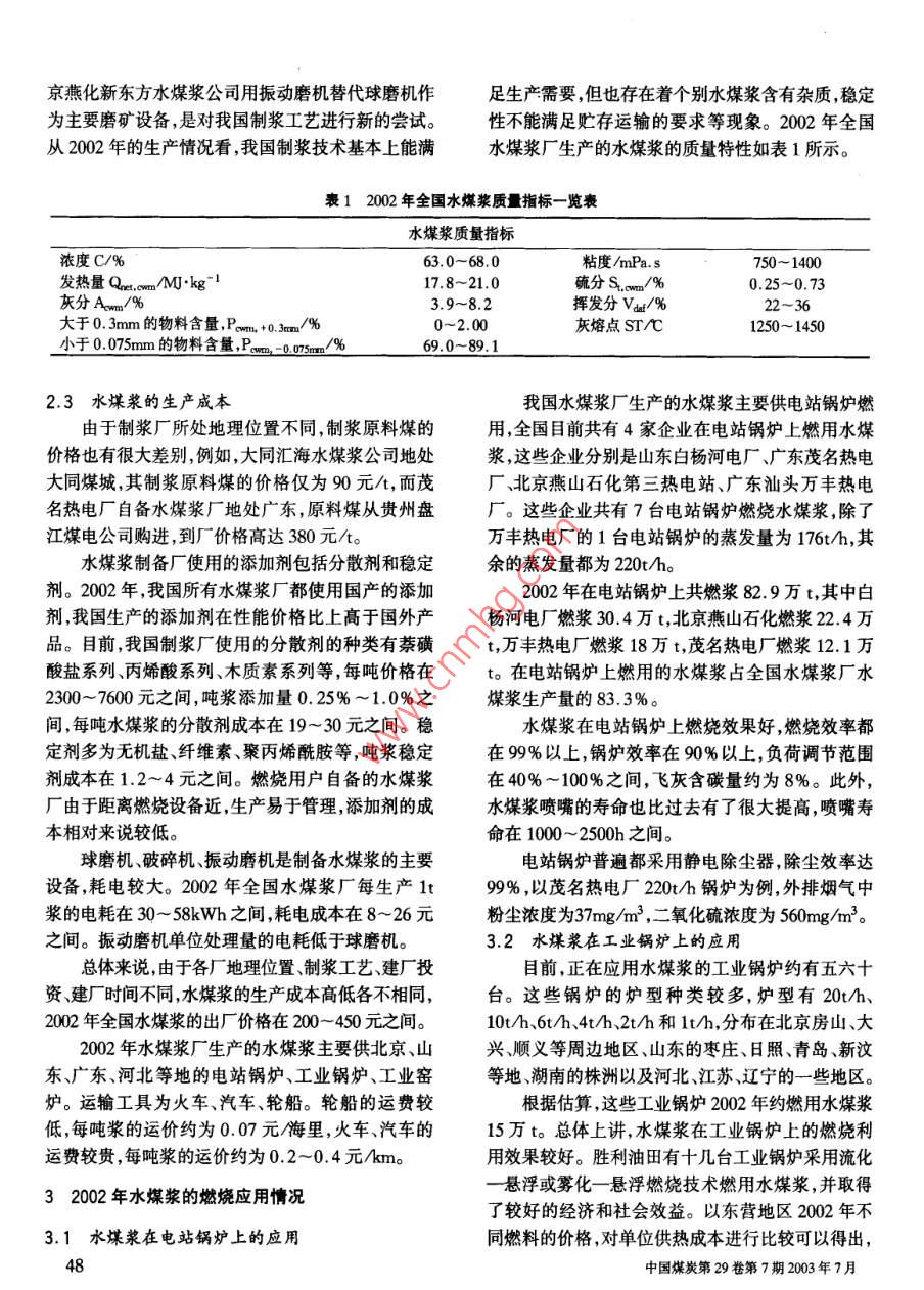 2002年全國(guó)水煤漿生產(chǎn)和應(yīng)用情況