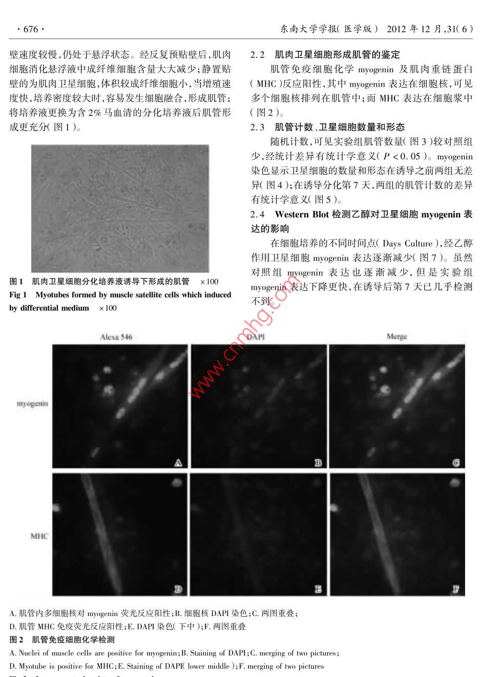 乙醇對(duì)肌肉衛(wèi)星細(xì)胞myogenin表達(dá)的影響