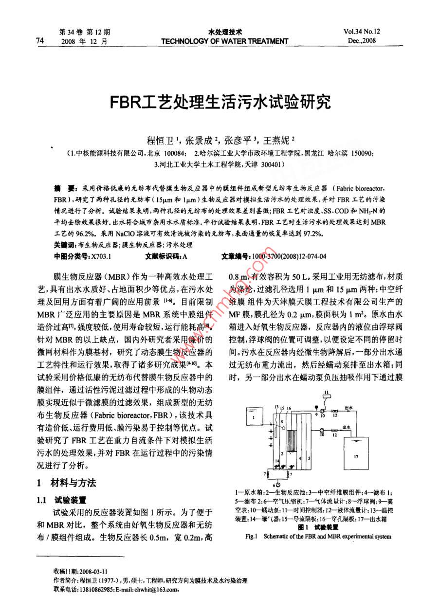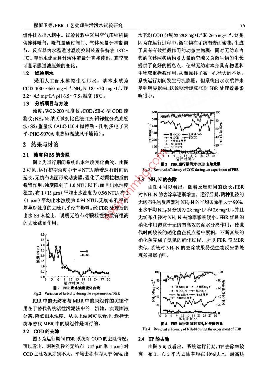 FBR藝處理生活污水試驗(yàn)研究