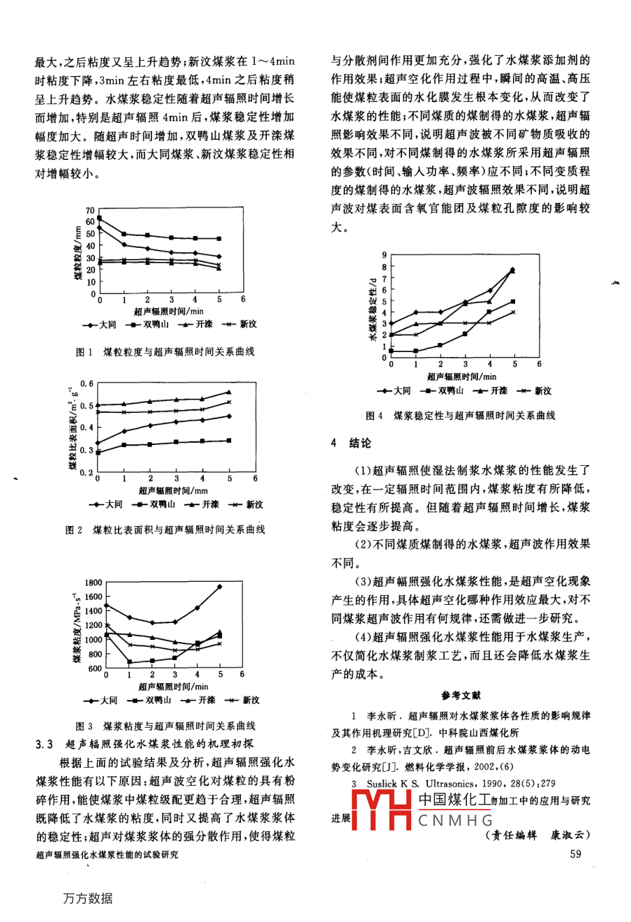 超聲輻照強(qiáng)化水煤漿性能的試驗(yàn)研究