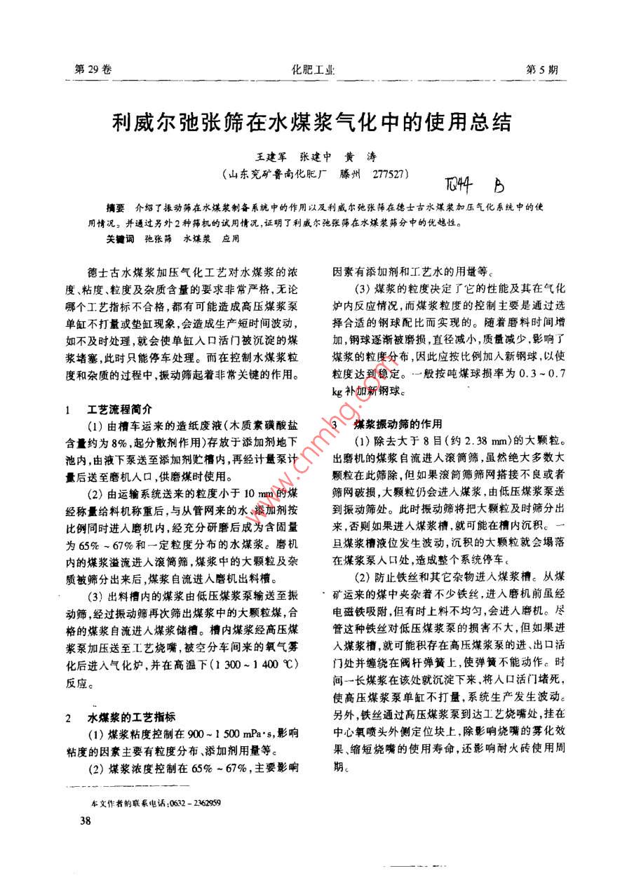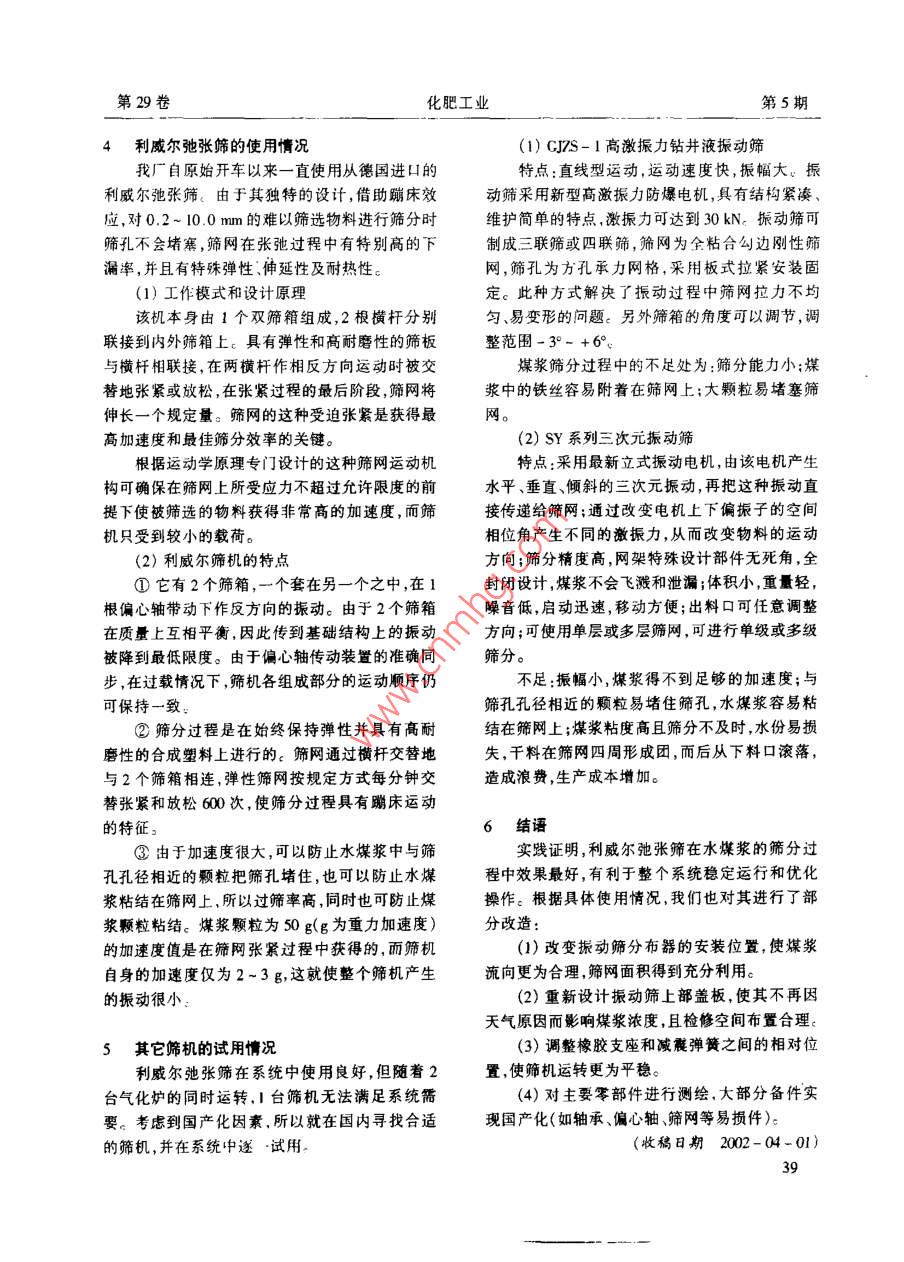 利威爾弛張篩在水煤漿氣化中的使用總結(jié)
