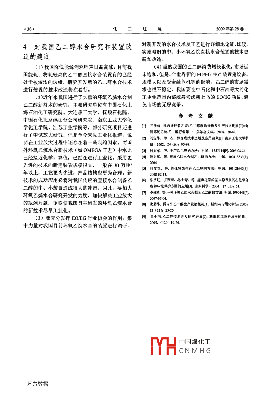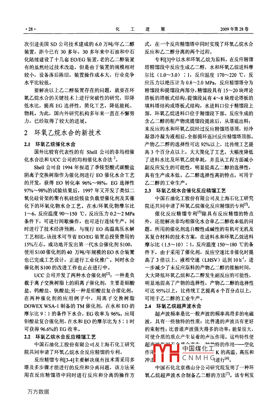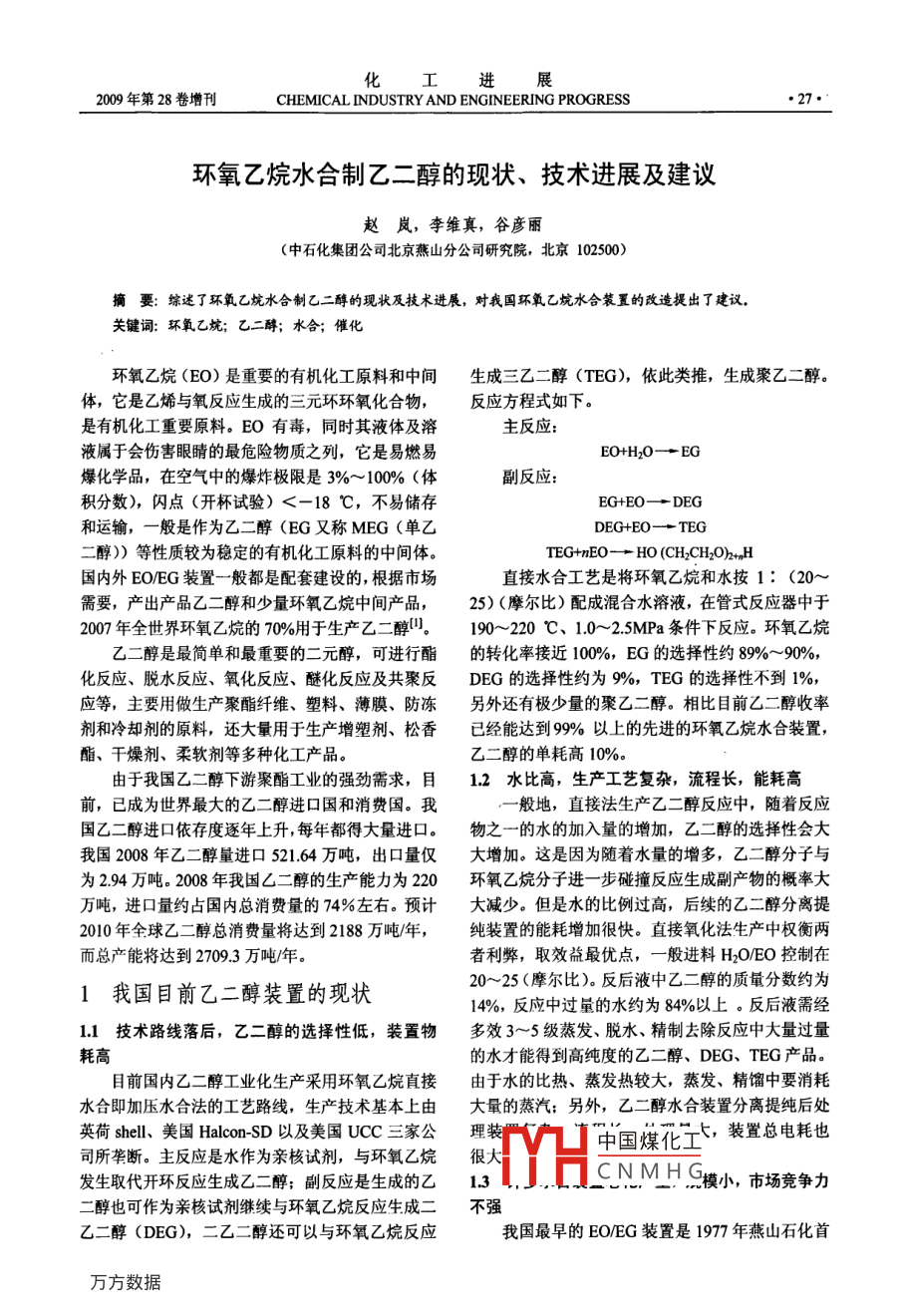 環(huán)氧乙烷水合制乙二醇的現(xiàn)狀、技術(shù)進展及建議 環(huán)氧乙烷水合制乙二醇的現(xiàn)狀、技術(shù)進展及建議